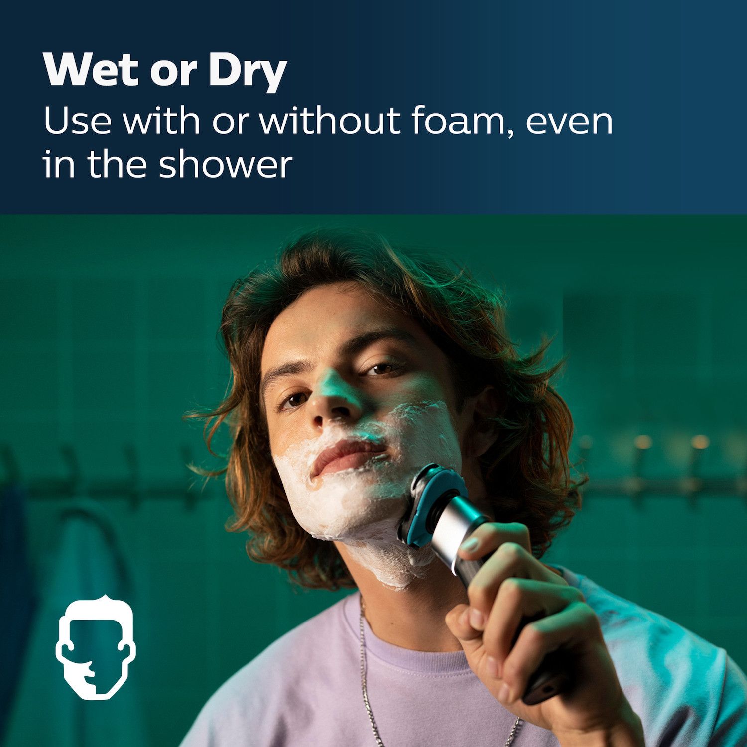 Get a convenient dry shave or a more refreshing wet shave with gel or foam, even in the shower, with the Philips Norelco Shaver 5000X Rechargeable Wet & Dry Shaver with Precision Trimmer.