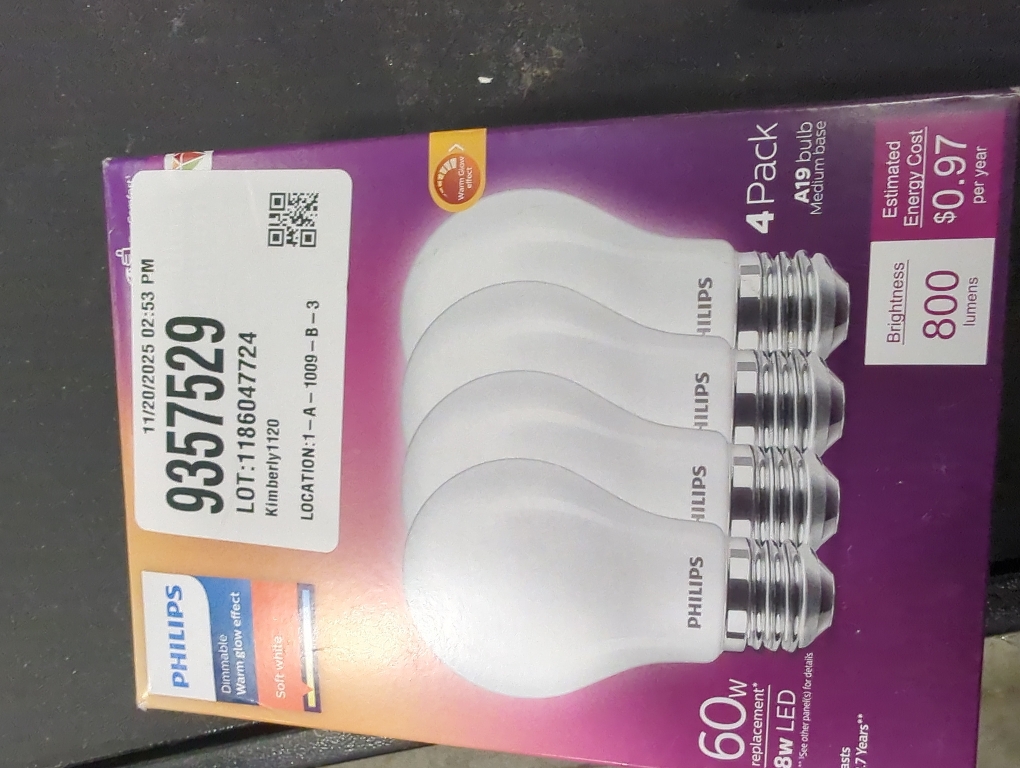Philips Ultra Definition A19 E26 (Medium) LED Bulb Soft White 60 Watt Equivalence 4 pk