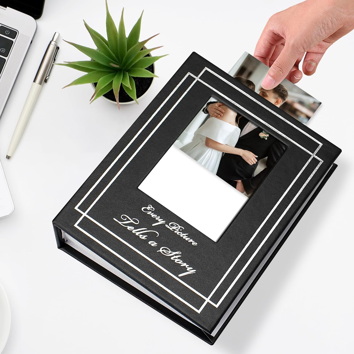 Photo Album 4x6 50 Photos Leather Cover Wedding Photo Albums Extra Large Capacity Picture Book with Beautiful Prints Presents for Wedding Baby Vacation Black