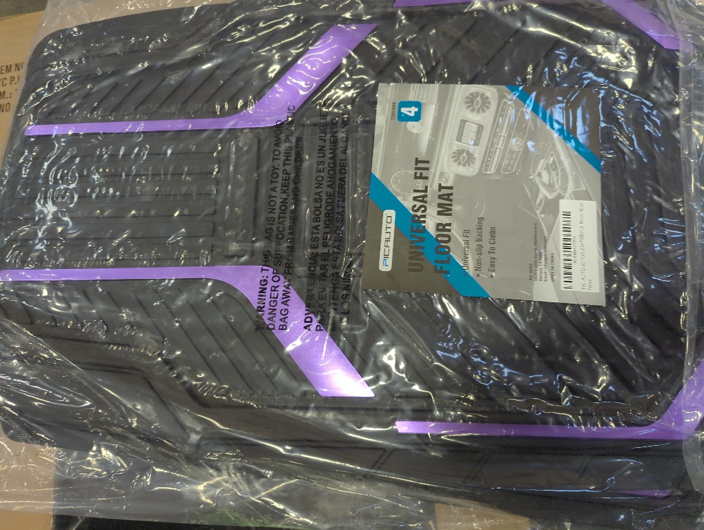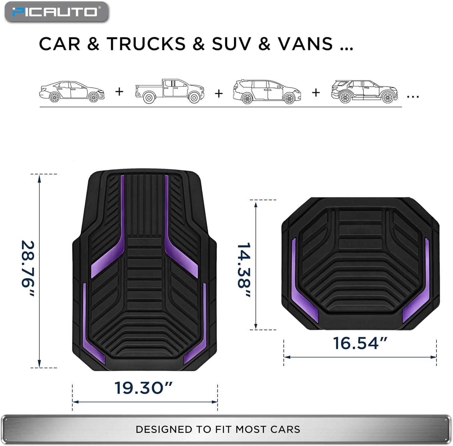 PIC AUTO Heavy Duty Rubber Floor Mats, Purple Aluminum Film Car Mats Set, Front and Rear Car Mats with Anti-Slip Backing, All Weather Protection, Trim-to-Fit for Automotive SUV, Sedan, Van