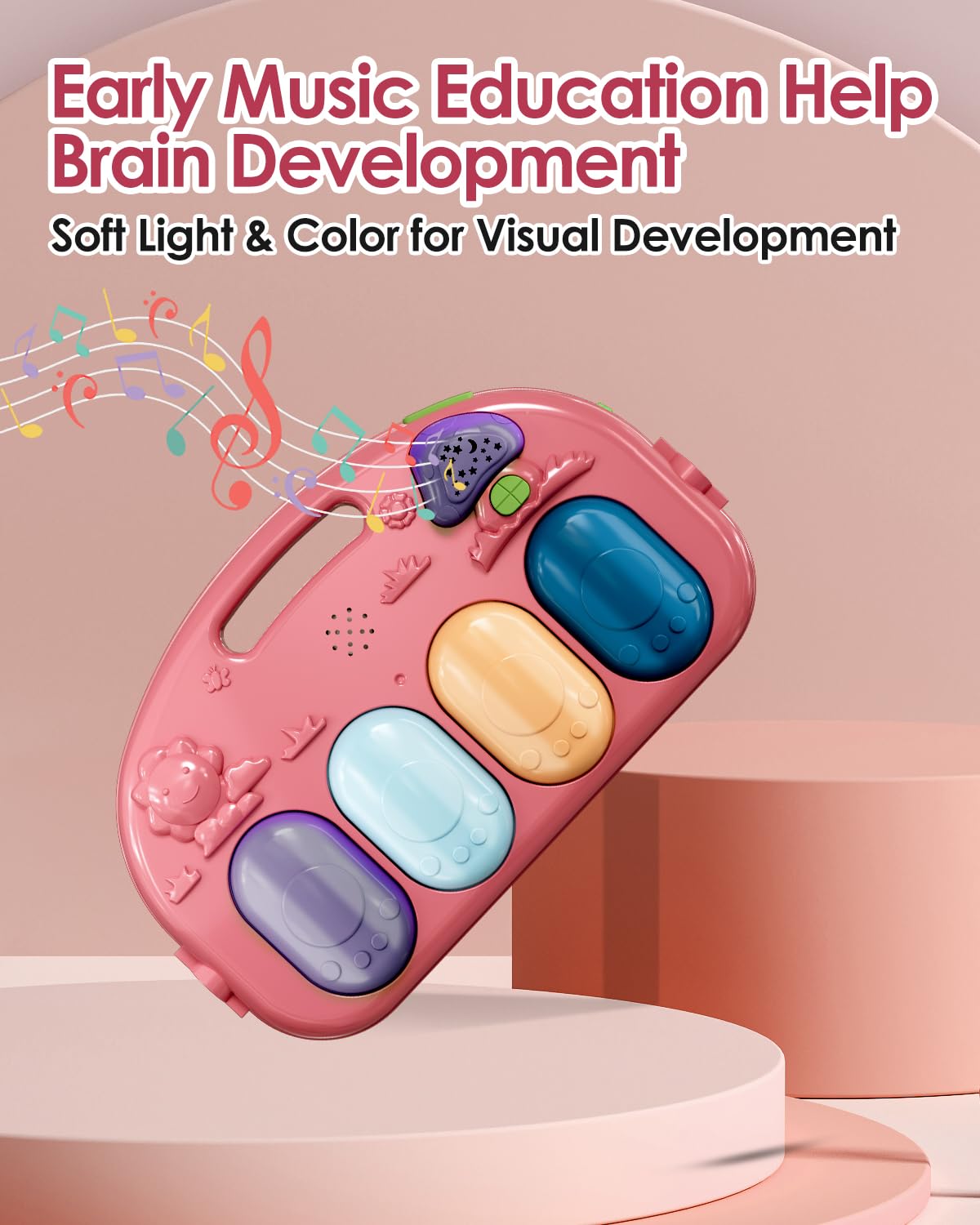 Pink dearlomum Baby Play Mat Baby Gym,Funny Play Piano Tummy Time Baby Activity Mat with 5 Infant Sensory Baby Toys, Music and Lights Boy & Girl Gifts for Newborn Baby 0 to 3 6 9 12 Months (Pink)