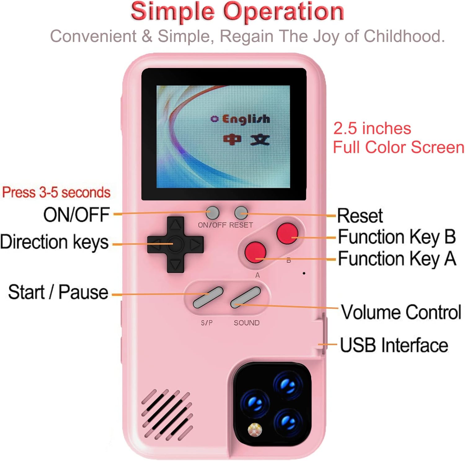 ???? 【Easy To Use】-- Comes with very sensitive keys, easy to operate. This video game phone case is a must-have companion to kill time and stress relief, super interesting and amazing!