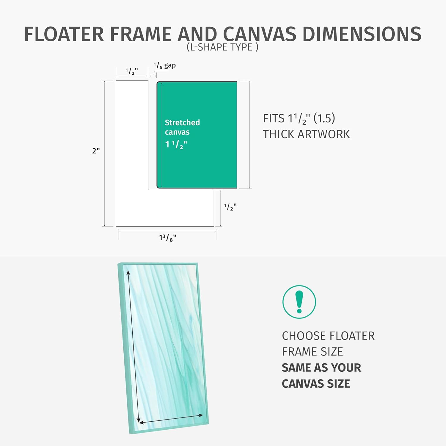 [ Size 18x36 ] The size listed in the description or the drop-down menu corresponds to the canvas size that fits within the Floater Frame (inner dimensions). Meaning, you should measure the width and length of your canvas and select the corresponding size from the list. For further clarification, refer to the additional information and illustrations in the product preview pictures