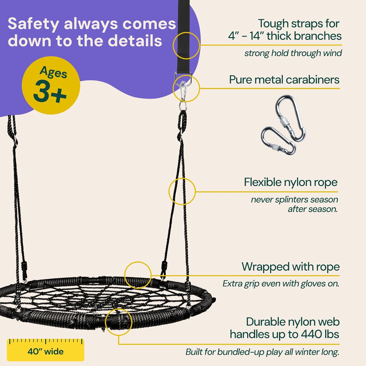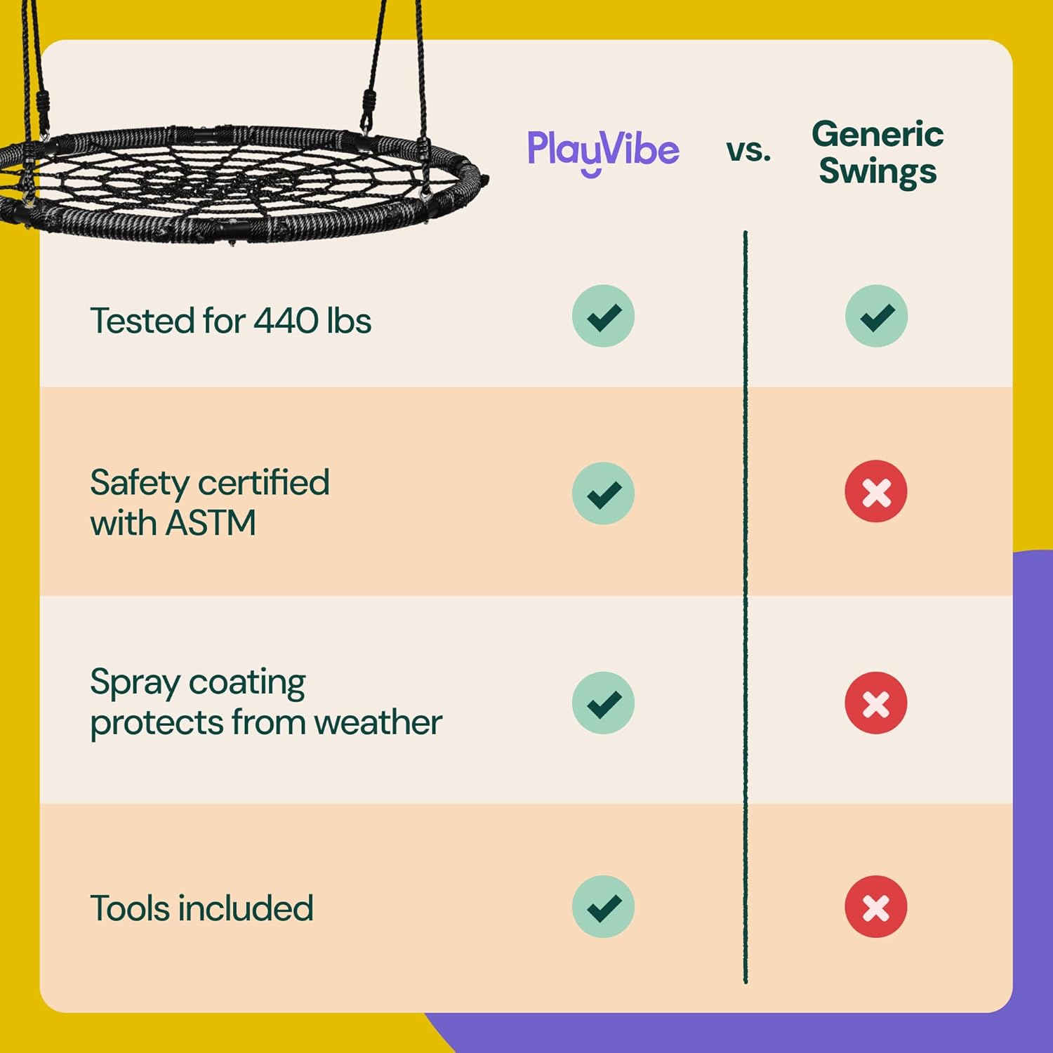 PLAYVIBE Spider Web Tree Swing - 40-Inch Black Saucer - 440 lb Capacity & 900D Oxford Waterproof Fabric - Heavy-Duty Steel Frame & Hanging Straps - Outdoor Swing Set Accessories - for Toddlers