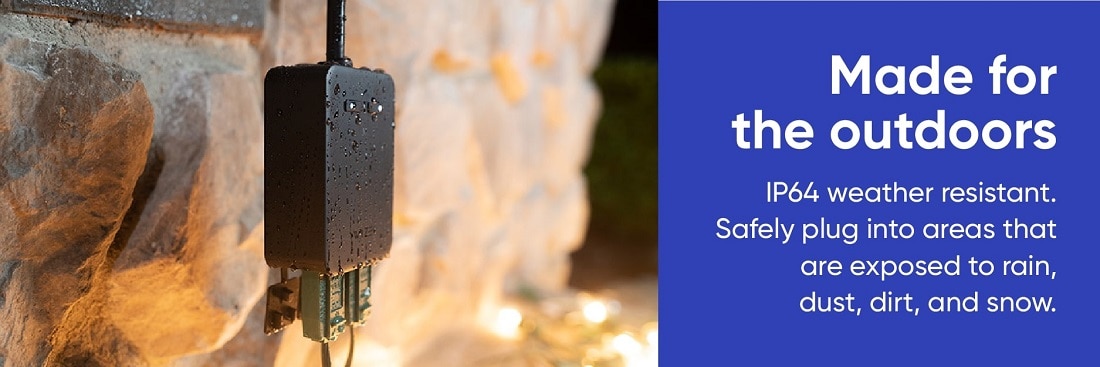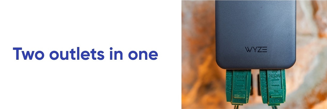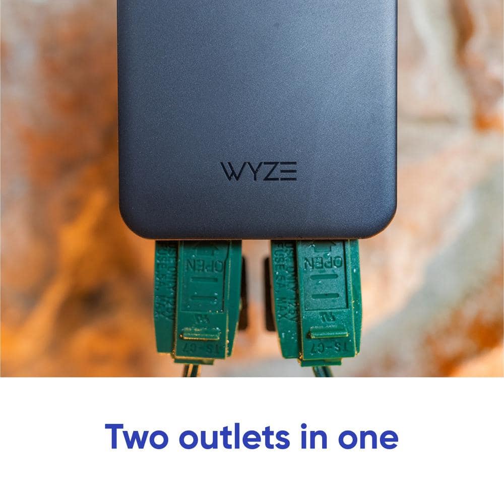 opened box for inspection. WYZE Plug Outdoor has 2 individually controlled outlets allowing you to plug 2 different devices into each WYZE Plug Outdoor. Quickly turn your devices on/off, set or edit schedules and see the current status of your WYZE Outdoor Plug from anywhere with the WYZE app. WYZE Plug Outdoor works with Alexa and the Google Assistant. WYZE Plug Outdoor is ready to face whatever Mother Nature throws at it. It can handle rain, wind, snow and dust and operates from minus 4°F to 120°F. WYZE Plug Outdoor also has rubber outlet covers that can be used when the device doesn't have anything plugged in to protect the hard.. Control from anywhere: quickly turn your devices on/off, set or edit schedules and see the current status of your WYZE outdoor plug from anywhere with the WYZE app. 2 for 1 control: WYZE plug outdoor has 2 individually controlled outlets allowing you to plug 2 different devices into each WYZE plug outdoor. Voice assistant ready: WYZE plug outdoor works with Alexa and the Google Assistant. Built-in light sensor: with a built-in light sensor, WYZE plug outdoor can turn on and off based on the environmental light so lights can turn on when it's dark and off when it's bright and since the sensor is built-in, WYZE plug outdoor can do all of this without a Wi-Fi connection. Vacation mode: WYZE plug outdoor can make it look like you're home by automatically turning your devices on/off at random times. IP64 rated: WYZE plug outdoor is ready to face whatever mother nature throws at it, it can handle rain, wind, snow and dust and operates from minus 4°F to 120°F, WYZE plug outdoor also has rubber outlet covers that can be used when the device doesn't have anything plugged in to protect the hardware. Shop all Wyze products here!.