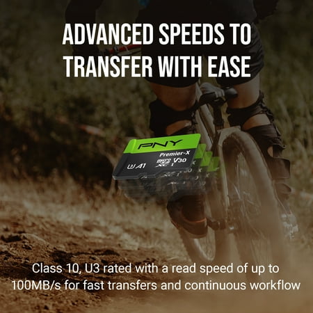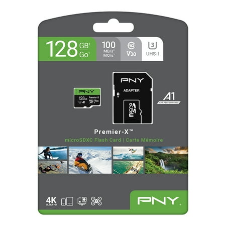 Class 10, U3, V30 speed class performance with read speeds up to 100MB/s for fast and smooth burst mode HD Photography and 4K Ultra HD Videography Reliable & Durable: Magnet Proof, Shock Proof, Temperature Proof, Waterproof Record and transfer videos, photos, music, files and more from microSD enabled host devices such as Android smartphones and tablets, action and surveillance cameras, drones, computers and more Included SD adapter for compatibility with SD enabled host devices including DSLR cameras, video cameras, desktops, and laptops A1 App Performance enables apps to run directly from the microSD card, delivering faster app launch and performance. A1 provides minimally 1500 IOPS (Read) and 500 IOPS (Write) PNY 128GB Premier-X Class 10 U3 V30 microSDXC Flash Memory Card