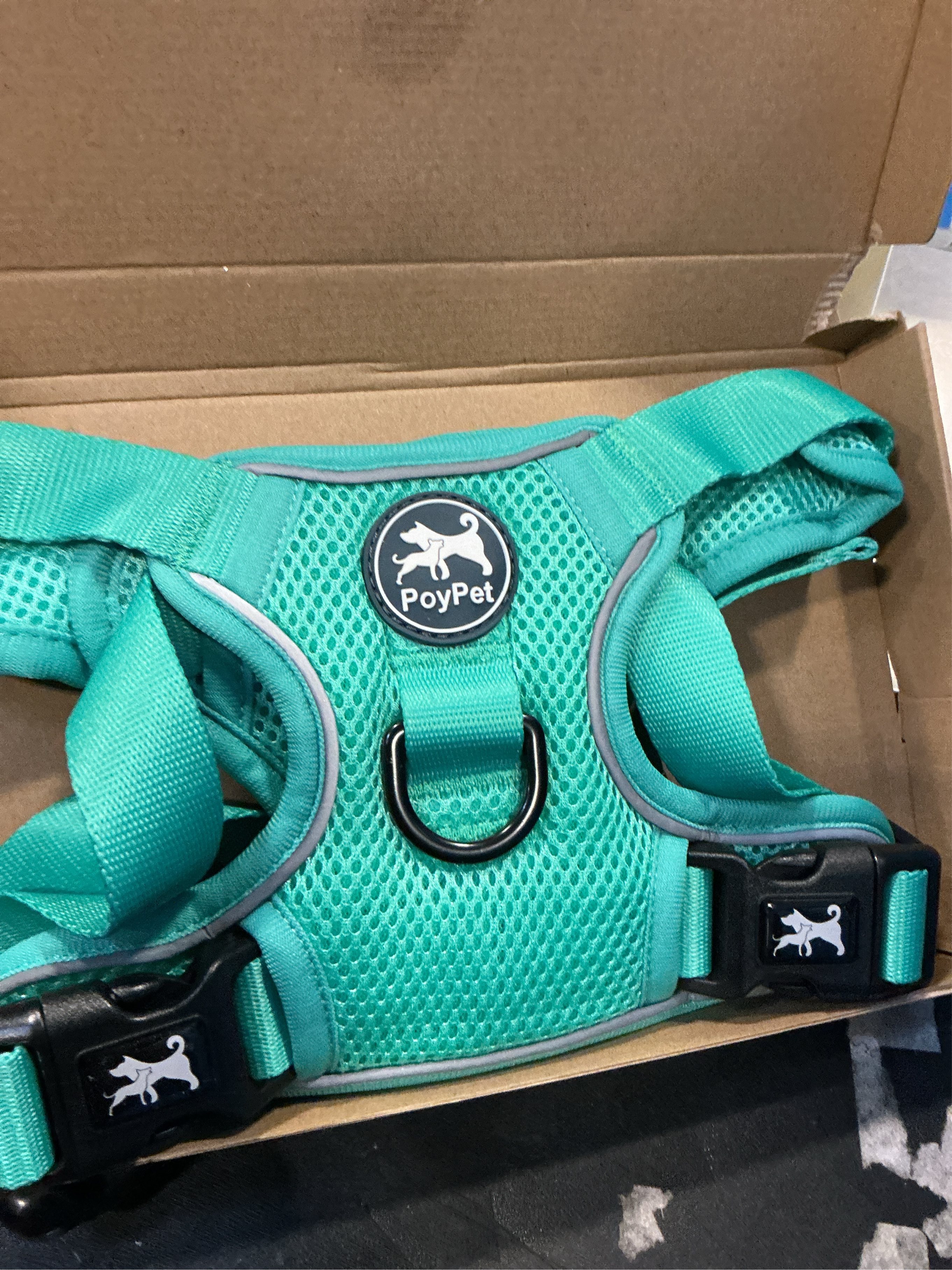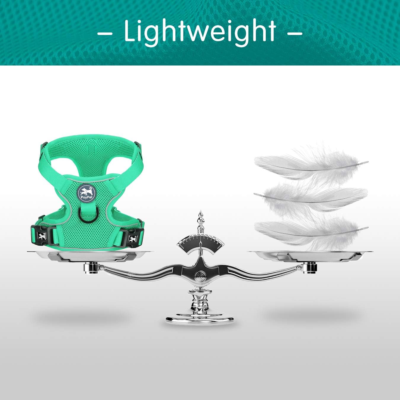 PoyPet Reflective Soft Breathable Mesh Dog Harness Choke-Free Double Padded Vest with Adjustable Neck and Chest(Mint Green,L)