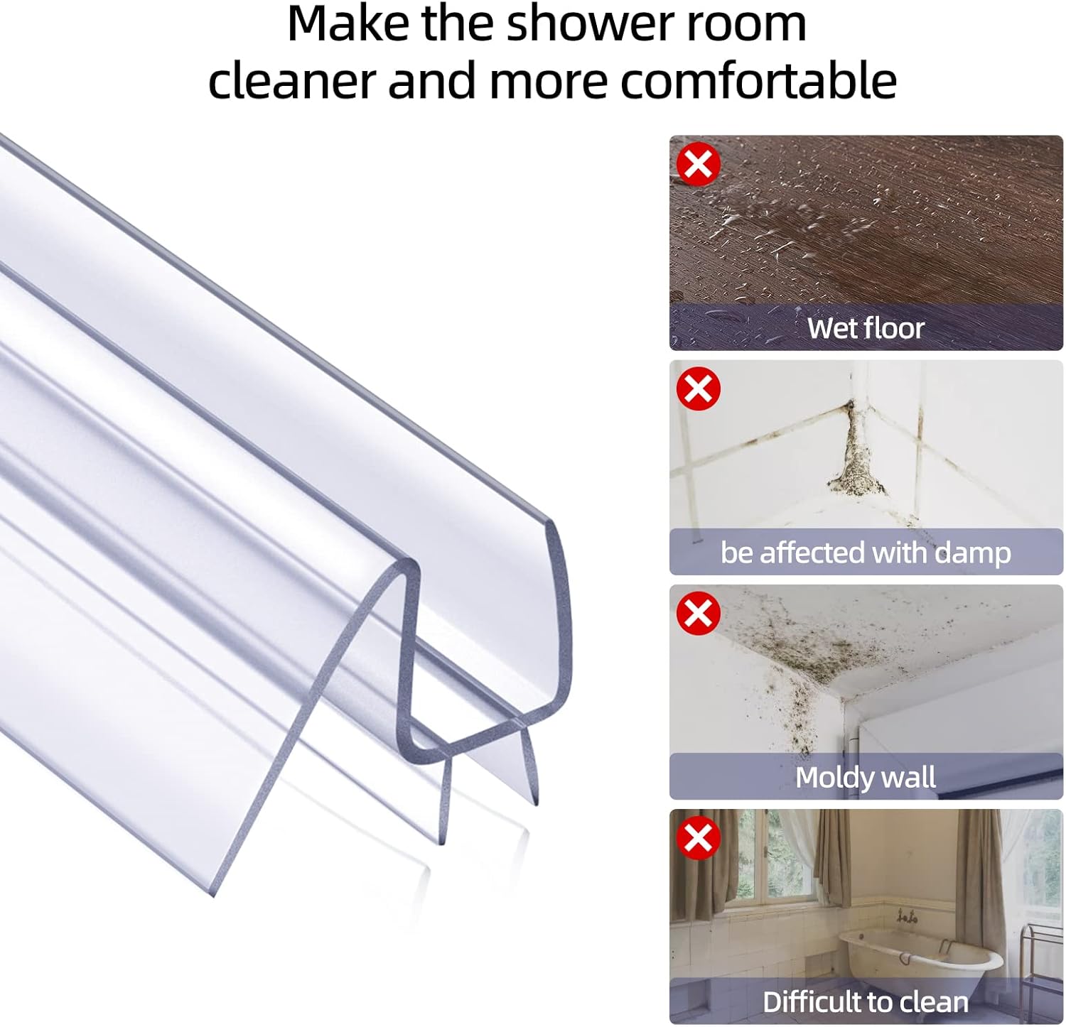 1. Precision Scene Adaptation Perfectly fits 1/4-inch (6mm) thick shower glass doors with 36-inch (914mm) optimal length. Seamlessly integrates with 1/4-inch (6mm) floor gaps for both sliding and swinging doors, acting as a professional waterproof guardian to keep shower water contained within the designated area.
