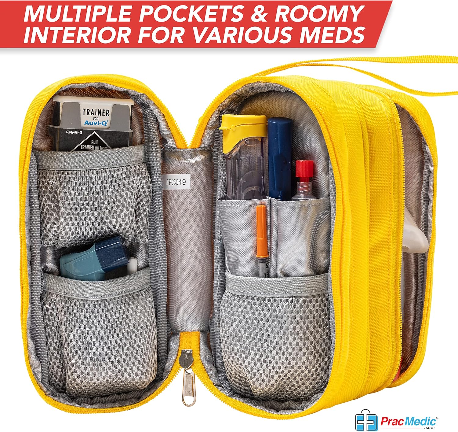 PracMedic Bags Diabetes Travel Case- 2 Tier Epipen Carrying Case for Epi Pens or Epipen Trainer, Auvi Q, Inhaler & Spacer, Diabetic Supplies & First Aid - Insulated Medicine Travel Bag (Yellow)