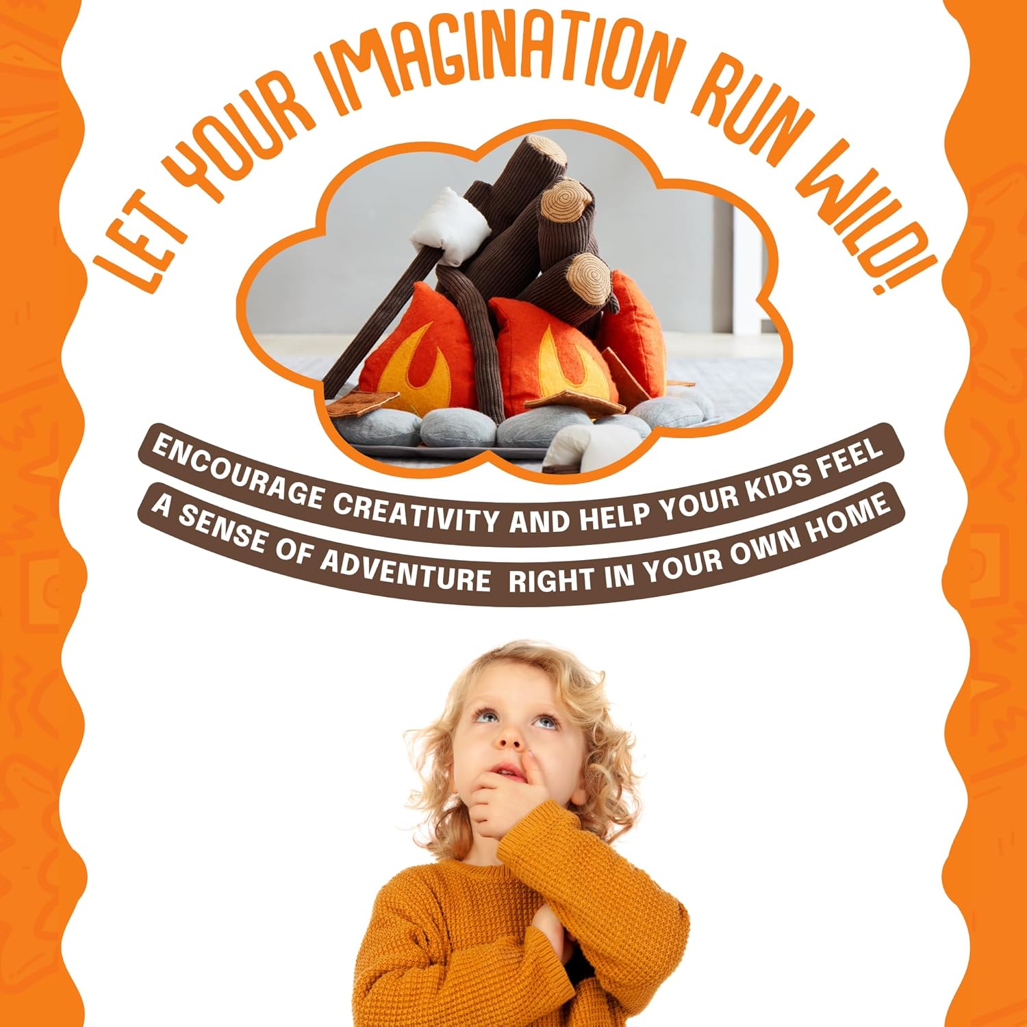 IMAGINATION PLAY - Let your kids' imaginations run wild while they huddle around this toy campfire and roast their smores over the felt fire. Tell ghost stories around the fake camp fire just like at real camp. A play fire pit for kids is the perfect way spark creative play.