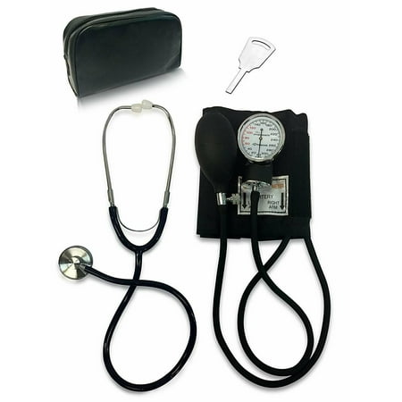 UNTESTED Primacare DS-9197-BK Classic Series Adult Blood Pressure Kit with Stethoscope, Black: Primacare-quality blood pressure monitor and stethoscope Blood pressure monitor kit is easy to use with instructions included Black color Black leatherette carry case included No-pin stop manometer (gauge) 300mmHg Black 29" x 5.5" adult size cuff includes convenient gauge holder Primacare blood pressure monitor has a washable nylon cuff Index and range markings on the cuff to ensure proper positioning Home blood pressure kit comes with a calibrating key for clinical accuracy Air release valve can be released using one finger Primacare aneroid is designed to fit the left or right hand Two earpiece stethoscope
