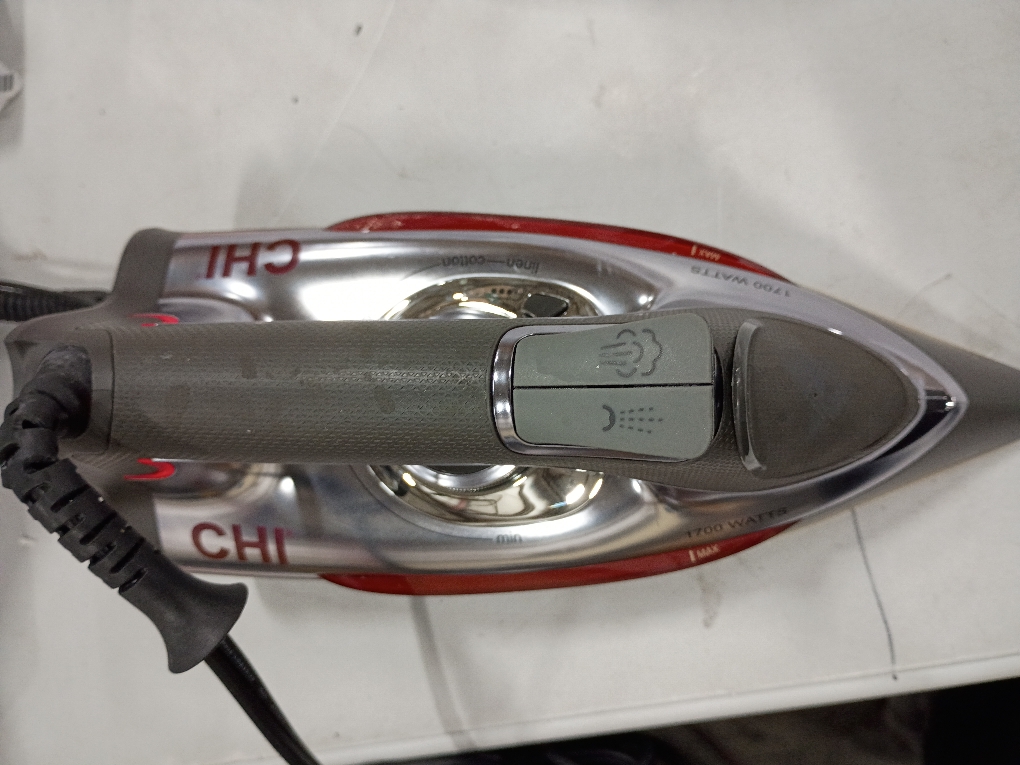 Whether your definition of a polished look is a well-pressed suit, a smooth silk dress or a wrinkle-free shirt for work, you can achieve it with the CHI Professional Clothing Iron. Like our haircare tools, this iron is designed to give you the high-performance power of the pros at home. Engineered with a titanium-infused ceramic soleplate similar to our popular CHI flat irons, the Professional Clothing Iron is durable enough to withstand scratches, heats up quickly and provides an extra-smooth glide. Ironing is simpler than ever with a temperature dial that includes a fabric guide, adjustable steam control and an easy to grasp, comfortable handle. With over 300 steam holes, you can smooth out the toughest of wrinkles effortlessly.. Appliance Type: Iron. Color/Finish: Black. Color/Finish Family: Black. Faceplate Material: Titanium. Features: Steam Control,Temperature Controls. Iron Type: Steam. Product Weight (lb.): 5 lb. Returnable: 90-Day. Self-Cleaning: No. Small Electric Product Type: Iron. Steam Control: Yes. Temperature Control: Dial. Water Capacity (qt.): 0.33 qt. Wattage (W): 1700 W. Certifications and Listings: ETL Classified. Cord Length (ft.): 10 ft. Product Depth (in.): 14 in. Product Height (in.): 8.75 in. Product Width (in.): 14 in. Iron Type: Steam