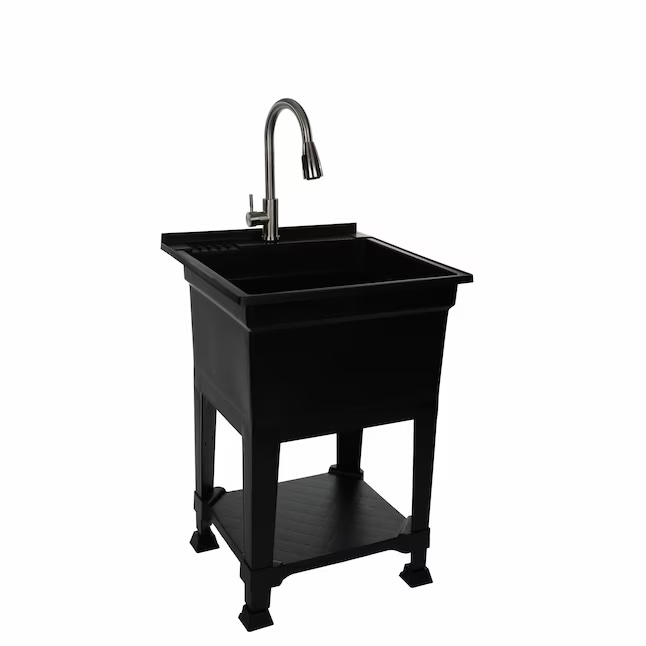 Project Source 24-in x 24-in 1 -Basin Black Freestanding Utility tub with Drain with Faucet