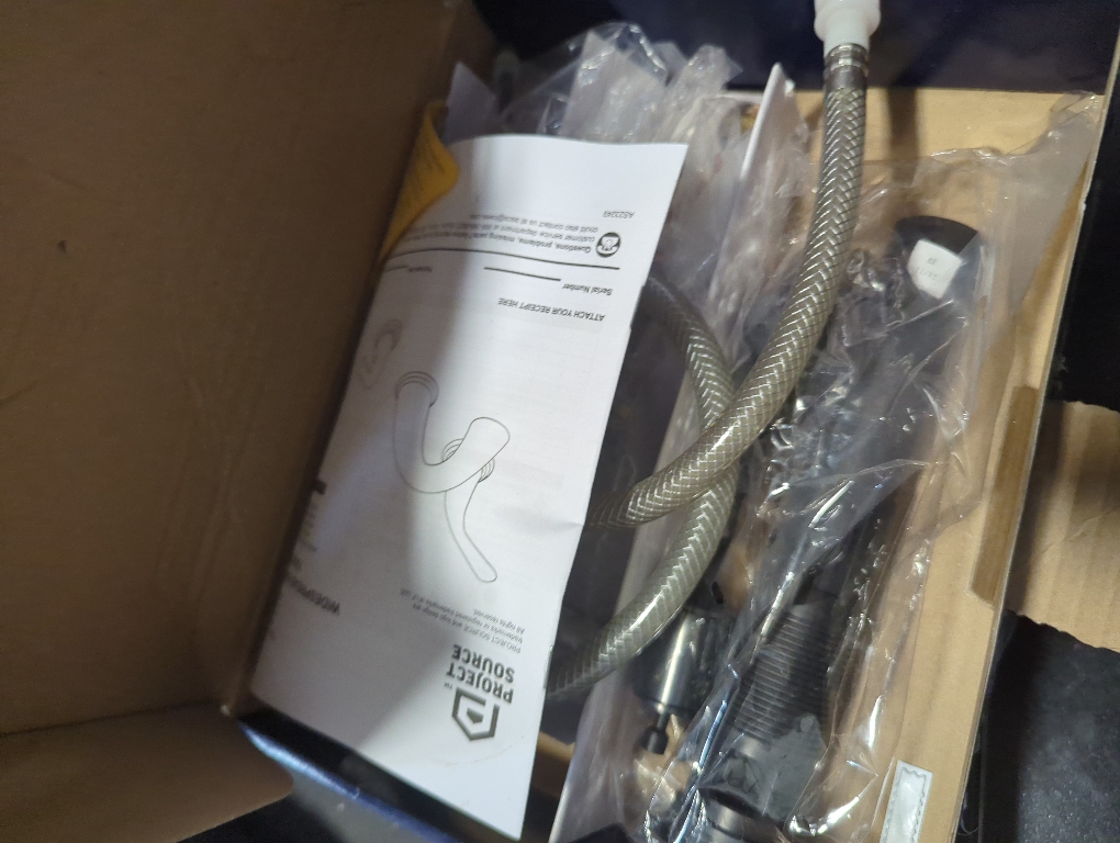 New open for inspection...The Dover Widespread Bath Faucet by Project Source offers a versatile transitional design that complements any bathroom decor. The Drop and Lock™ drain included with the sink faucets requires 3 steps for installation, complete in just minutes. These faucets meet WaterSense® criteria to conserve water without sacrificing performance. The products’ ceramic disc valves assure smooth handle operation and drip-free performance. The Dover Collection offers includes sink faucets, a tub and shower faucet and a roman tub faucet.
