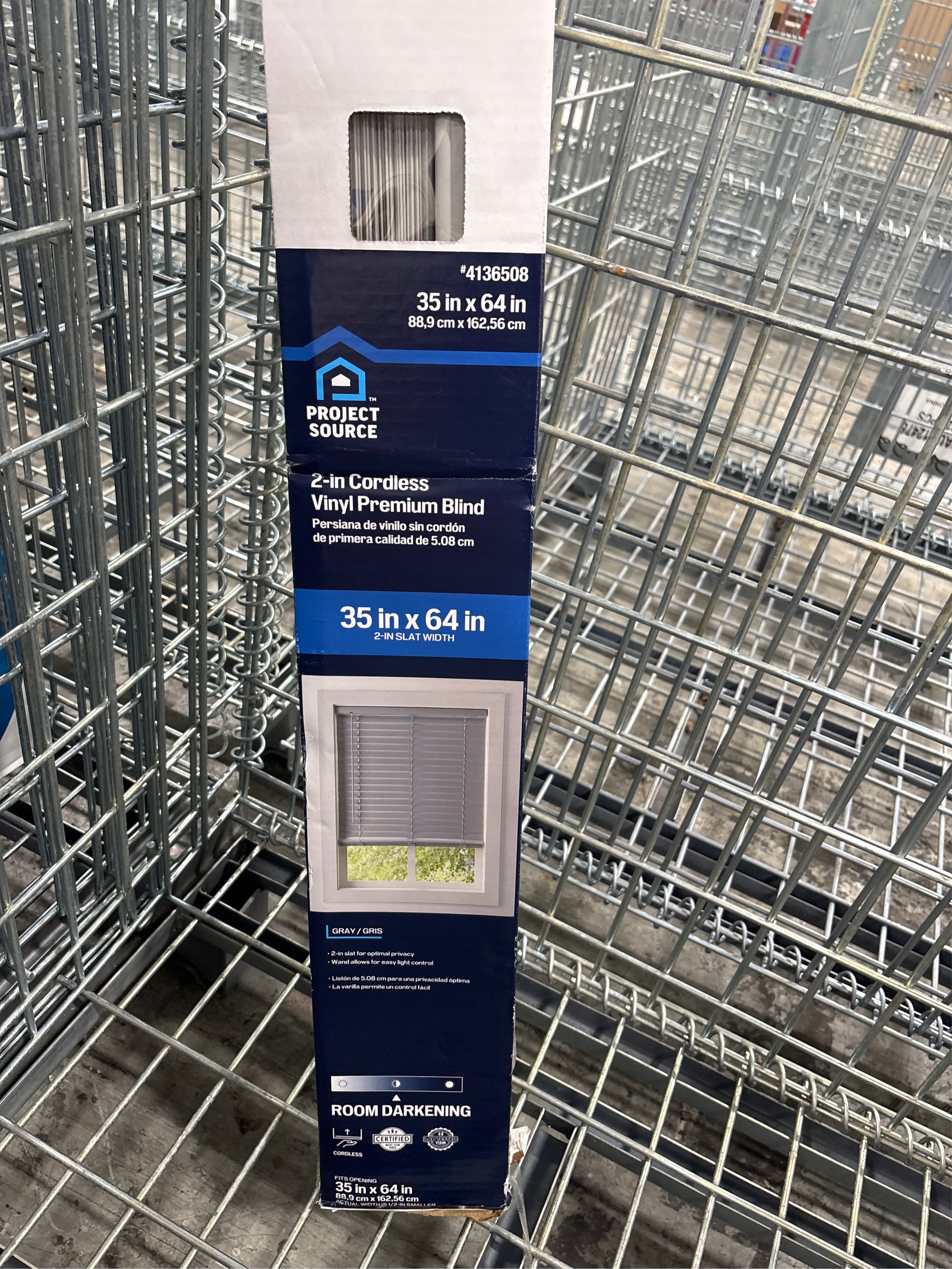 Project Source Premium 2-in 2-in Slat Width 35-in x 64-in Cordless Gray Vinyl Room Darkening Horizontal Blinds