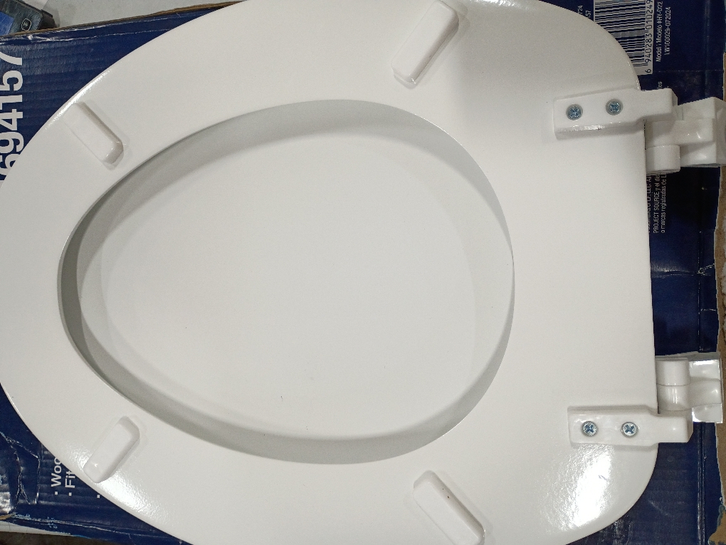 Fits elongated front toilets. Molded wood toilet seat manufactured from recycled material. Enameled wood with a high-gloss finish. Color-matched bumpers and hinges. Easy installation and cleaning for your convenience