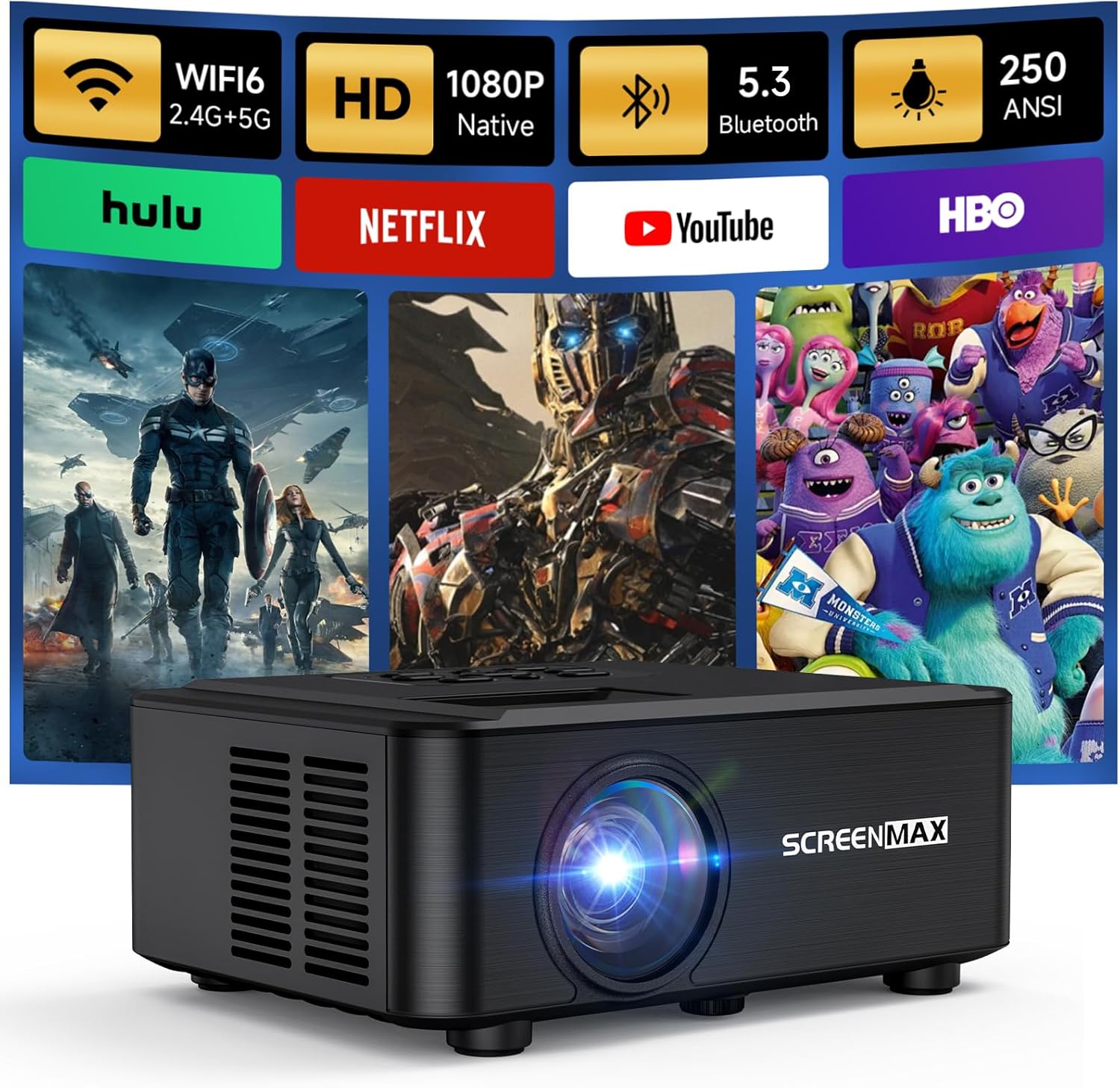 ➤【Bluetooth 5.3 ready ! Built-in 8W Speaker.】The 2025 Bluetooth projector features advanced Bluetooth technology (V.5.3), providing stable and reliable connections. Say goodbye to the inconvenience of unstable Bluetooth links. Effortlessly connect to your Bluetooth speakers for an unforgettable movie night with this outdoor projector. The Bluetooth projector also built-in an 8W HIFI speaker. (Note: The Bluetooth function supports only audio output and does not support mobile phone audio input.)