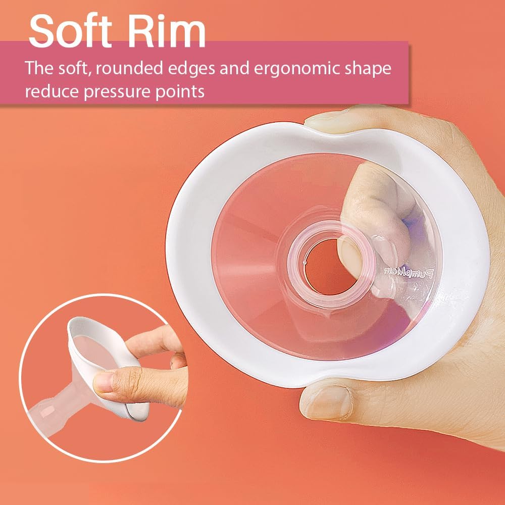 [Comfort Factor] The soft-rimmed PumpMom flex breast shield makes for a much more comfortable fit for pumping.