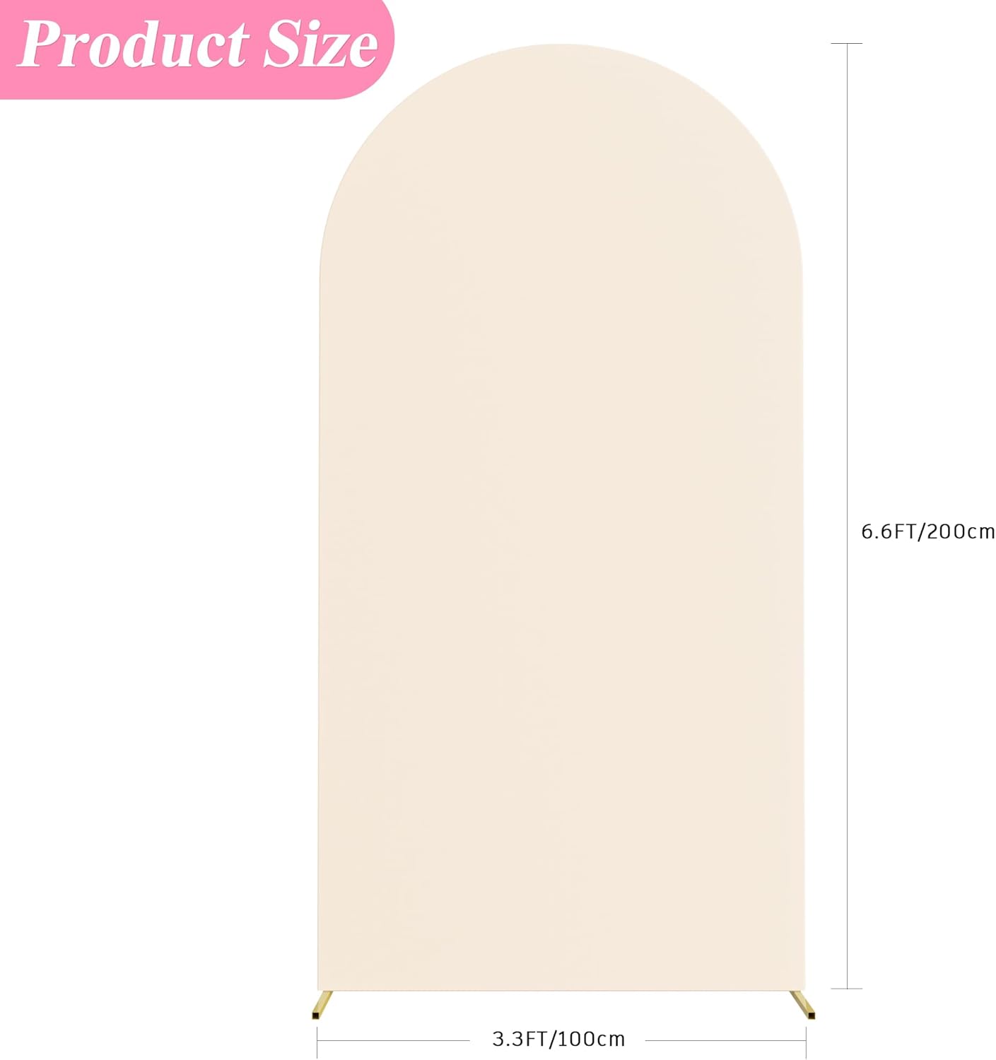 Putros Wedding Arch Cover 6.6FT Beige Spandex Fitted Round Top Chiara Backdrop Stand Covers for Wedding Birthday Party Decoration