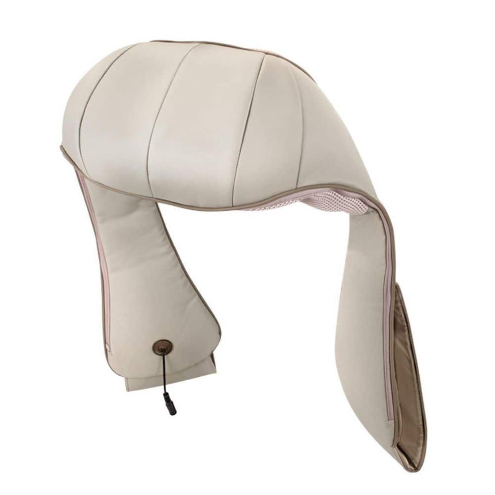 Melt away tense and tight muscles with the Quad Action Shiatsu Kneading Neck & Shoulder Massager with Heat. Optimize your massage experience with 3 intensity levels and optional heat for added comfort and relaxation. Reverse rotation provides inward and outward kneading for a professional-quality, therapeutic massage. It's ergonomic design and convenient handles provide flex for a perfect fit around your neck. Prepare to be soothed into relaxation.. Bath Accessory Type: Body Massager. Color/Finish: Tan. Heat Setting: Yes. Massager Type: Pillow. Number of Rollers: 2. Number of Speed Settings: 3. Returnable: 90-Day. Wattage (W): 40 W. Certifications and Listings: ETL Certified. Product Depth (in.): 7.01 in. Product Height (in.): 5.12 in. Product Width (in.): 44.88 in. Massager Type: Pillow. Heat Setting: Yes