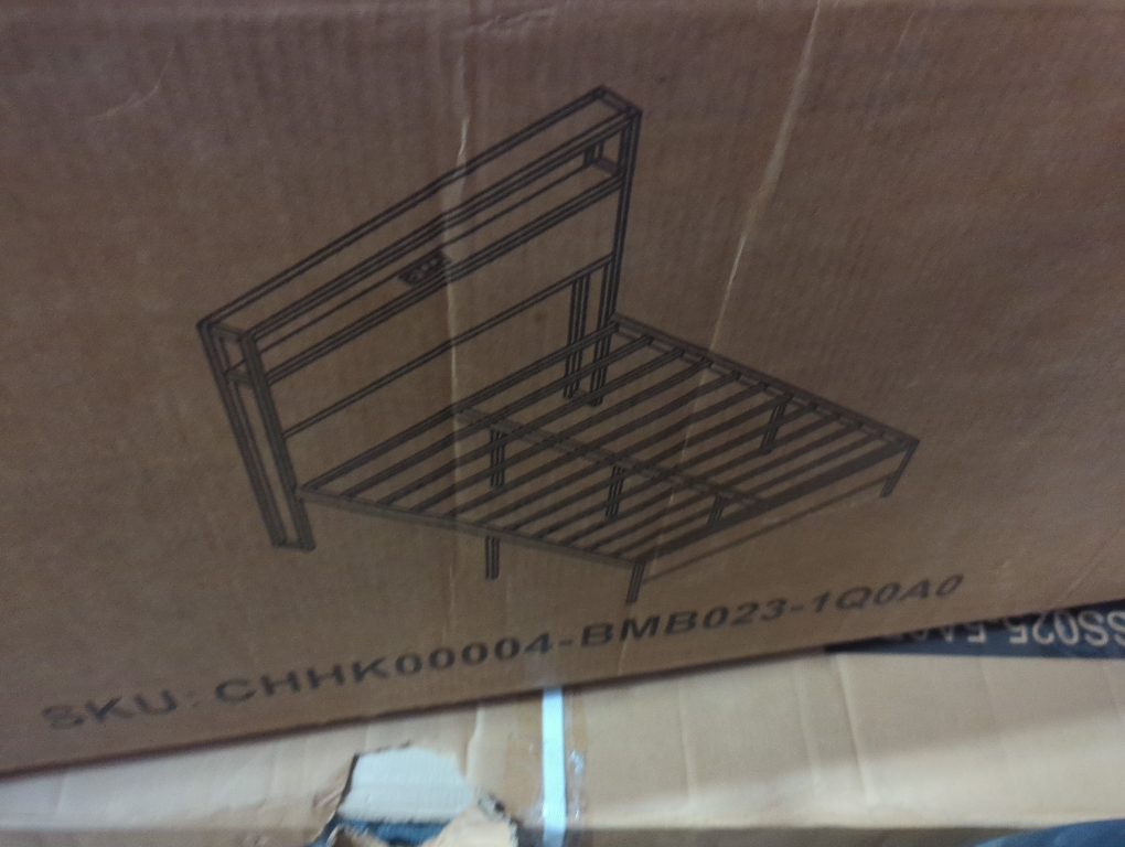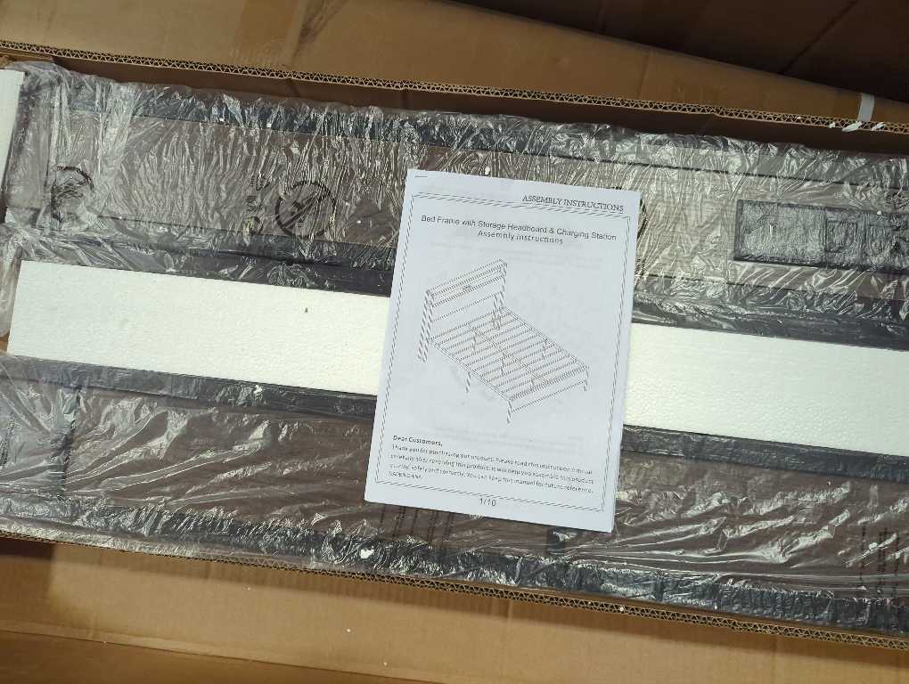 BOX OPENED FOR INSPECTION PRODUCT IS NEW Queen Bed Frame With Storage Headboard and Charging Station Brown