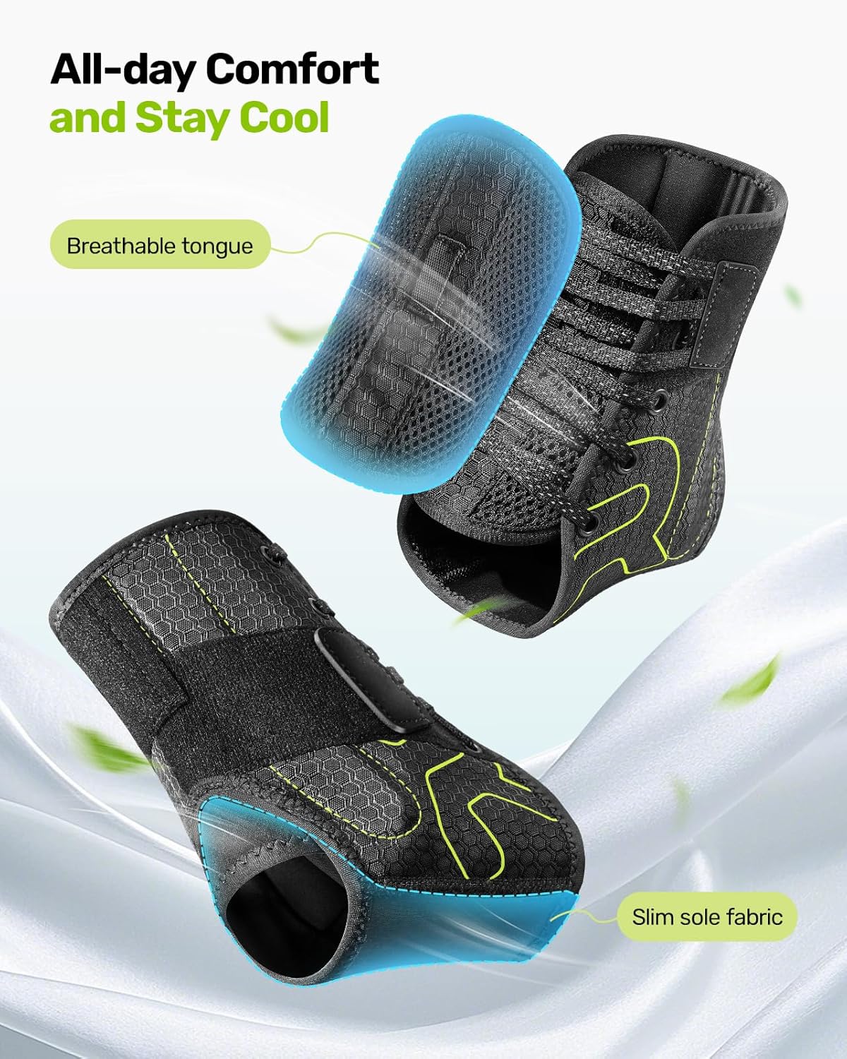 Dual Metal Stays for Reinforced Stability: Built-in thickened spring metal stays on both sides, bend-tested 100,000 times without deformation. This achilles tendonitis brace provides strong yet flexible ankle stabilization, limits excessive twisting, ideal for injury recovery, plantar fasciitis relief and achilles tendonitis relief.