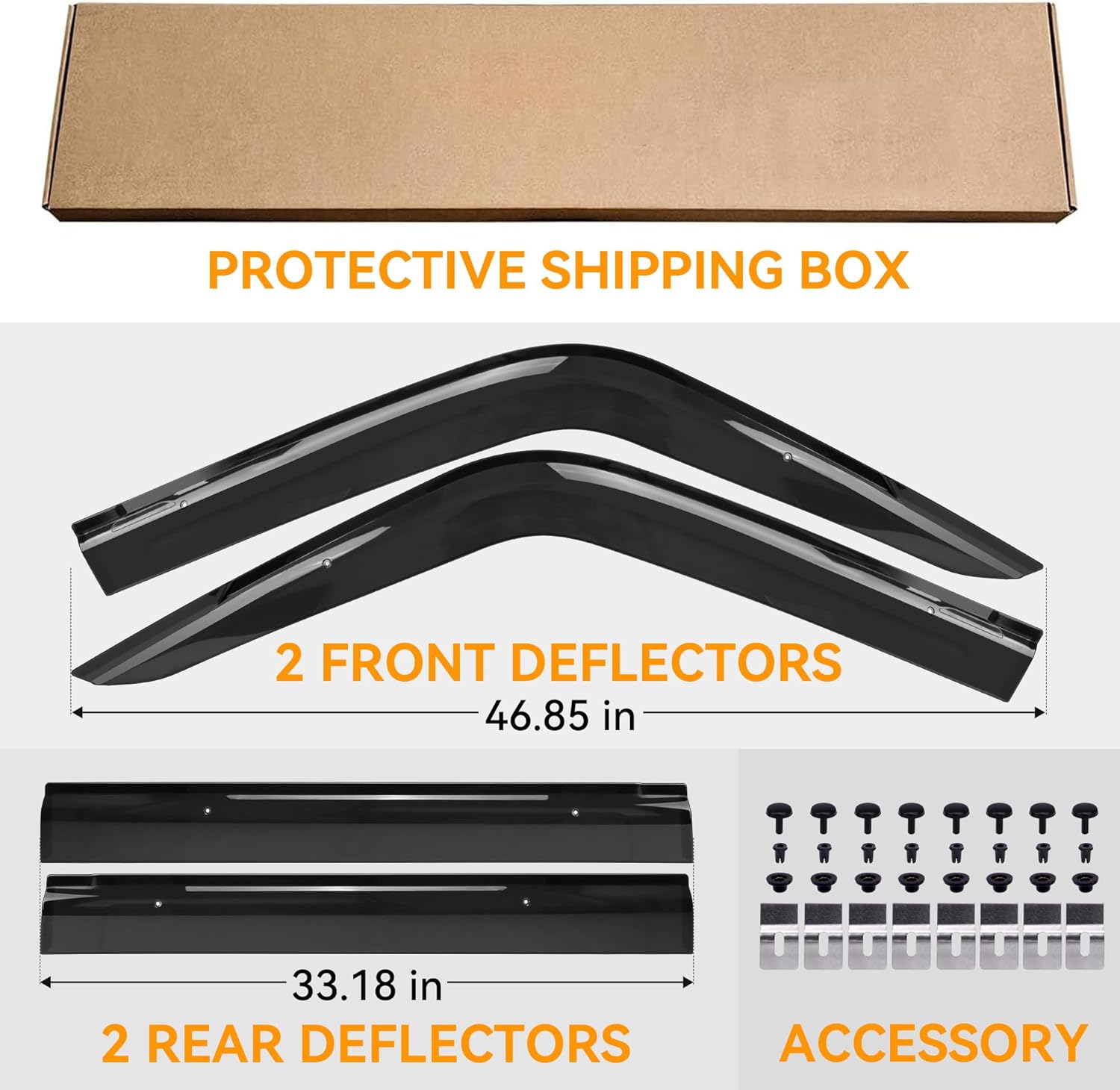 Anti-fog, Low profile, Low-noise, and Efficient Design: With the lowest profile, Minimizes wind noise (buffeting) when windows are partially open. Allows windows to be opened slightly (1-2 inches) even in heavy rain to prevent window fogging in rain. Does not interfere with window operation (superior to in-channel types)