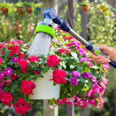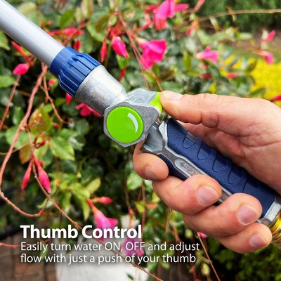 Say hello to the ultimate of ultimate high-performing watering wands! The Ray Padula Diamond Series PRO Thumb Control telescoping mini wand created to be one of the most advanced, high performing water wands available today. The ultra heavy-duty, premium, modern metal construction is designed to provide rugged performance season-after-season, even with the toughest daily use. Best of all, this nozzle features Ray Padula Thumb Control! This unique design allows you to turn your wand ON, OFF, and completely adjust water flow with a simple push of your thumb, and without having to walk back and forth to the faucet. With no triggers to squeeze, dials to press, or buttons to click, say goodbye to hand fatigue and strain while watering a great feature for hands with limited grip strength. This watering wand features 9-selectable watering patterns to provide the perfect pattern no matter the task, whether you re watering the flowers, or washing your car. The unique telescoping feature of this wand allows it to extend from 18-inches to 24-inches long, providing additional reach! It s never been easier to water hanging baskets, out of reach plants and gardens, large vegetable beds, or even washing the car! You ll also enjoy the Comfi-Grip handle providing a slip-resistant grip, a twistable nozzle top designed to customize the direction of spray while keeping your hand in a comfortable position, as well as a premium metal construction designed to perform season-after-season. Highlights: Innovative Thumb Control design allows for ON, OFF, and complete flow control with a simple push of your thumb no trigger to squeeze! Great for hands with limited grip strength. 8-selectable watering patterns provide a pattern perfect for every task. Mini wand design provides additional reach compared to standard nozzles great for watering planters, hanging baskets, and more! Telescoping riser extends from 18 in. To 24 in. Long great for reaching out-of-reach plants and gardens. PRO ultra heavy-duty metal construction is great for tough, everyday watering use. Comfi-Grip ergonomic body relieves hand stress while watering, while providing a slip-resistant grip. Metal, crush resistant threads resist cross-threading. Specifications: Dimensions (Overall): 18 Inches (H) x 3.75 Inches (W) x 2.25 Inches (D) Weight: .76 Pounds Protective Qualities: Leakproof, Weatherproof Number of Spraying Patterns: 8 Material: Metal