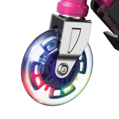 Light up your kid s playtime with the Razor A+ Lightshow kick scooter. Crafted with precision excellence, this durable, light-up scooter takes the classic Razor A scooter to the next level. Featuring fun, eye-catching multi-color LED lights integrated into the deck and urethane wheels, the Razor A+ Lightshow kick scooter is a bright idea that kids will love. The motion-activated lights turn into a dazzling light show as soon as your child steps onto the deck and starts kicking. Built to grow with your child, an adjustable height handlebar provides flexibility to extend usage for years to come. Designed to travel effortlessly, this kick scooter is foldable, making it super easy to transport and store. Delivering countless hours of fun and memories, Razor A+ Lightshow kick scooter is sure to be a hit in a timeless style.