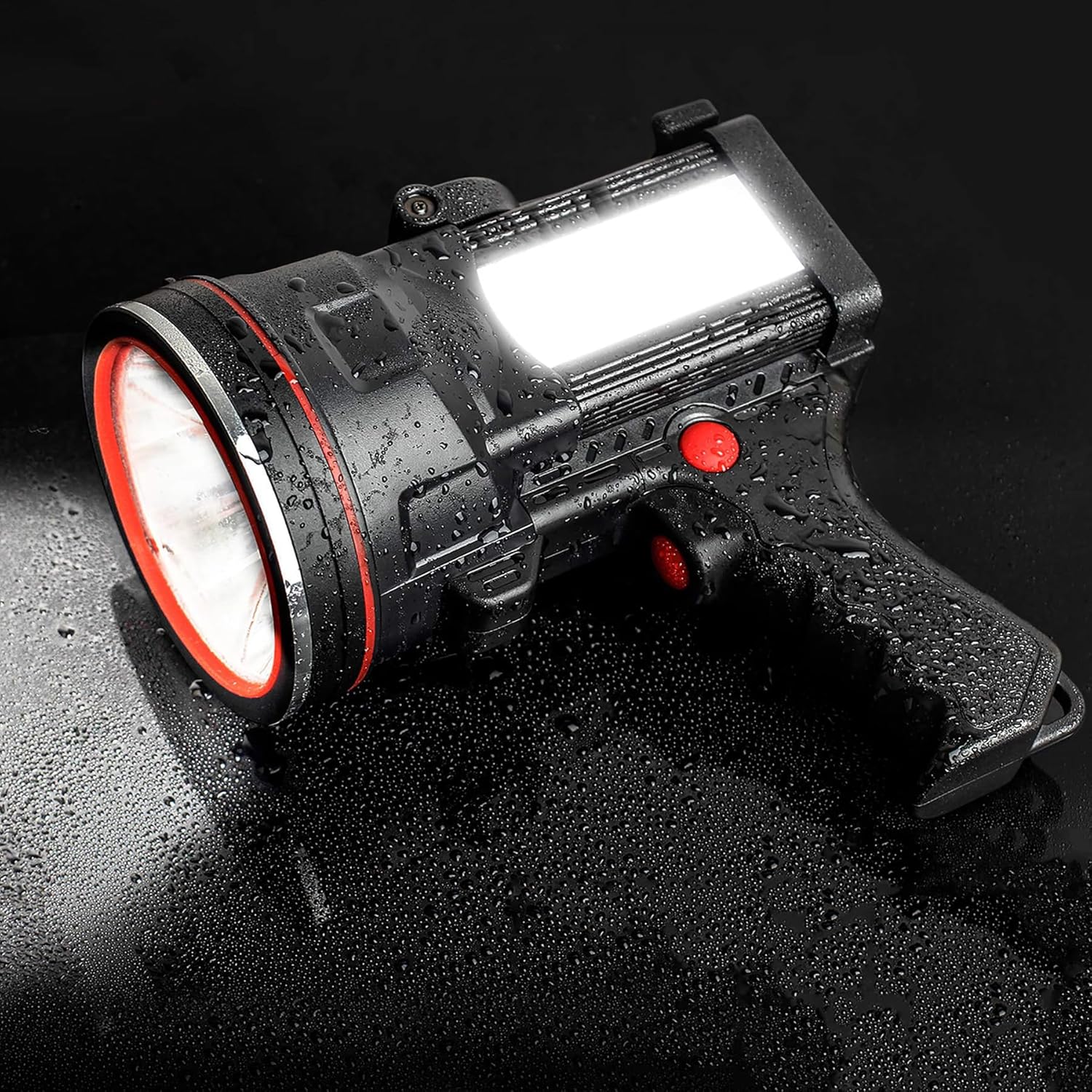 [Super Bright Spotlight] The Spotlight rechargeable three adjustment modes of high/low/strobe to adapt to all long-distance lighting, suitable for outdoor camping, night fishing, hunting, emergencies