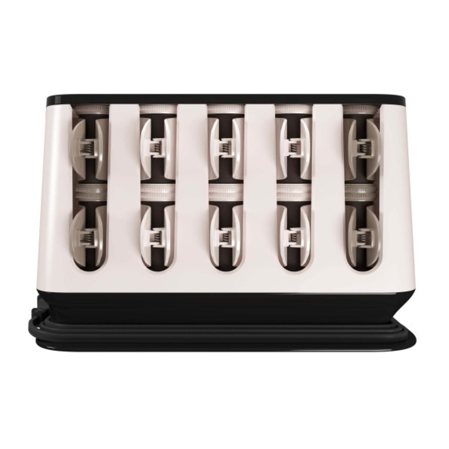 • Dually Heated Rollers treated with Ceramic Argan Oil Keratin: For a smooth, radiant shine.