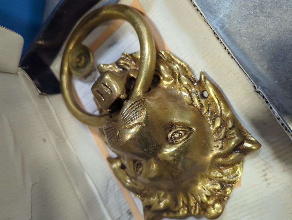 Renovators Supply Manufacturing Door Knockers for Front Door 6 1/4 in. Solid Brass Lion Head Door Knocker with Mounting Hardware