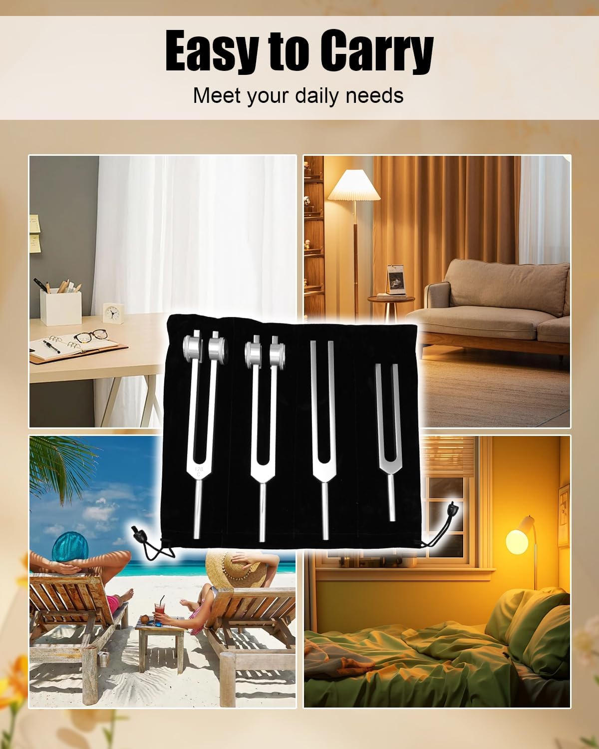 Portable: The tuning forks are equipped with a portable storage bag for easy carrying, whether at home, in the office or traveling, you can always enjoy the benefits of tuning fork therapy and keep your body and mind in the best condition