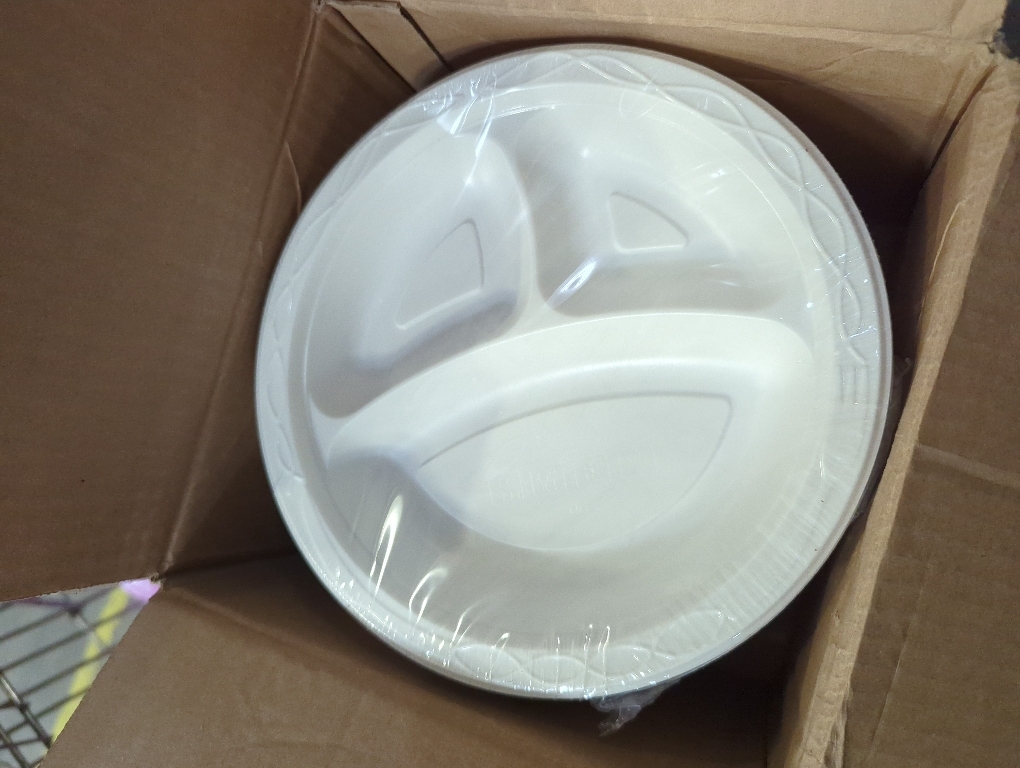 Restaurantware-RW Base 10.4 Inch Microwavable Food Plates, 150 Round Plastic Plates - 3 Compartments, Disposable, White Plastic Dinner Plates, Serve Hot And Cold Foods, For Restaurants And Cafes