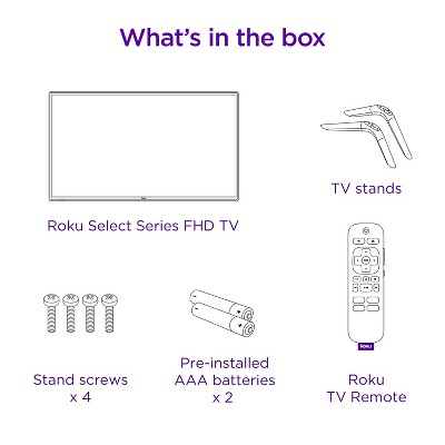 Roku Select Series Full HD TVs are thoughtfully designed for a delightful entertainment experience at an incredible value. Enjoy your streaming favorites in bright, full HD picture and catch every word with sound features like auto speech clarity and night mode. Switch to your inputs and watch free live TV right from the home screen or use the remote s pre-set shortcut buttons to quickly launch popular apps. From living rooms and bedrooms to kitchens and kids rooms, these Roku TVs are perfect for any room or budget without sacrificing quality. A smart TV made by Roku? Now that makes sense. Highlights: The smart TV that makes sense: Roku Select Series TVs are built by Roku to bring viewers a brilliant streaming experience at an incredible value. Made by Roku: From the brand you trust to make streaming easier comes a thoughtfully designed 40-inch smart TV powered by the delightfully simple Roku experience. Bright picture: Enjoy your movies, shows, and games with sharp picture quality, exceptional clarity, and stunning brightness. Designed for seamless streaming: With features like fast Wi-Fi and apps that launch in a snap, Roku Select TVs get you to your entertainment quick and easy. Customizable home screen: Roku smart TVs put your favorite TV streaming apps, inputs, and free live TV front and center, so you can spend your time streaming not scrolling. Endless free TV: Enjoy the best selection of free entertainment with 400+ live TV streaming apps, award-winning Roku Originals, in-season shows, hit movies, kids TV, and more. Stream what you love: Enjoy the most popular TV streaming apps, plus a massive selection of free and live TV, including news, sports, and family entertainment. How sound should sound: Not all TV speakers are created equal. Roku Select Series TVs are all designed for clear speech and louder sound so you can catch every word. Specifications: Dimensions (Overall): 20.4 Inches (H) x 35.6 Inches (W) x 2.5 Inches (D) Weight: 11.7 Pounds Electronics Condition: New Electronics Features: Streaming Capability, Wi-Fi, Color Enhancer, Parental Controls, Sleep Timer, Smart TV, Built-In ROKU Streaming Aspect Ratio: 16:9 Aspect Ratio Screen Resolution: 1080p Native screen refresh rate: 60 Hz Wireless Technology: Wi-Fi Screen Size: 40 Inches Stand Depth: 7.6 Inches Industry or Government Certifications: No Certifications Stand Width: 35.2 Inches Compatible With: Alexa, YouTube TV, Netflix, Disney+, Apple TV+, Max, Amazon Video, Hulu VESA Mounting Standard: 200x100 Product Depth with Stand: 8.1 Inches Product Height with Stand: 22.4 Inches Product Width with Stand: 35.6 Inches Backlight type: LED Direct Lit Smart platform: Roku Voice assistant built-in: ROKU Voice Assistant Built-In Number of HDMI ports: 3 High Dynamic Range (HDR): No HDR Screen Mirroring Technology: Apple Airplay Battery: 2 AAA Alkaline, Required, Included