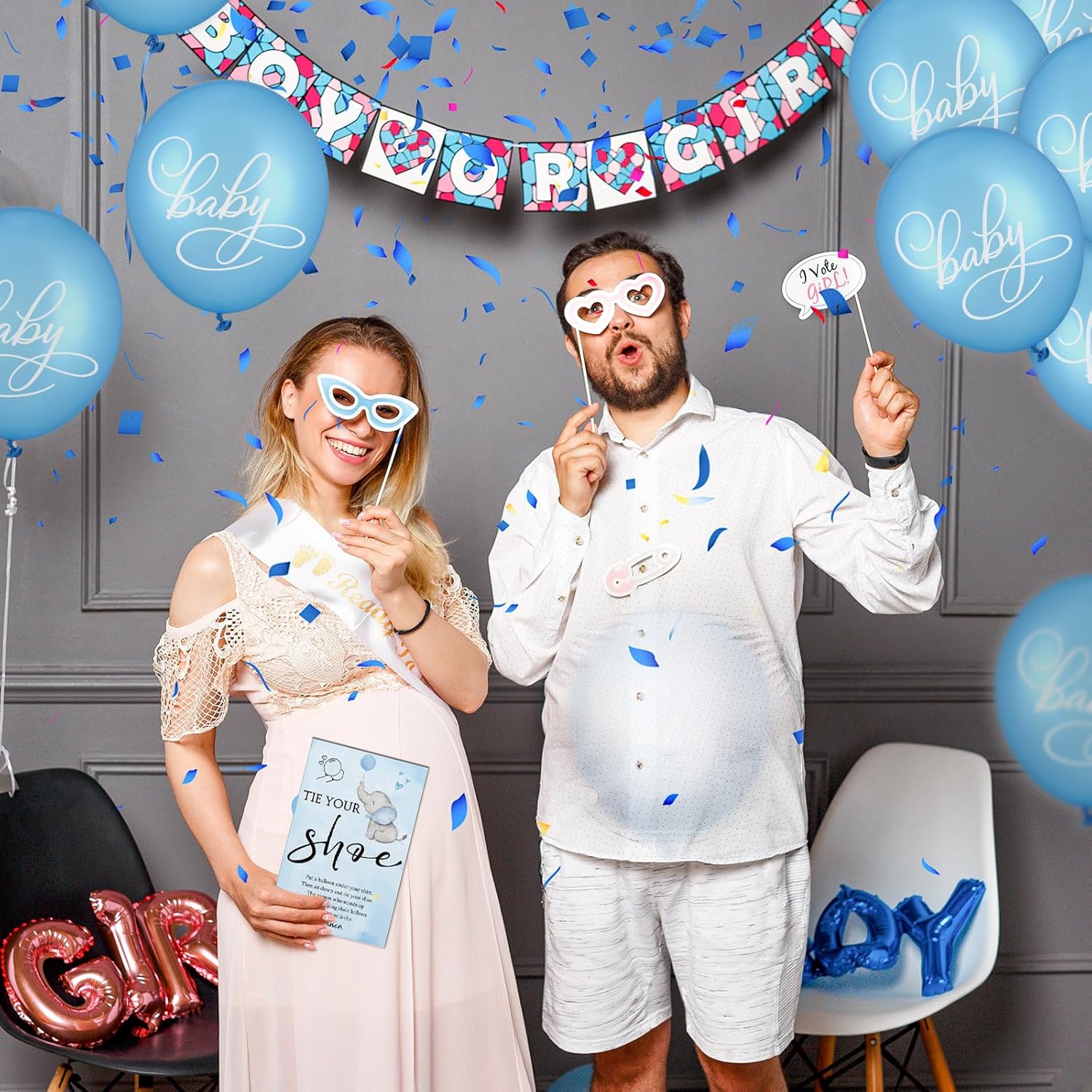 Ideal Party Addition: our tie your shoe baby shower game is specially designed for gender reveal parties and baby showers; Complementing your decor or applied as table decorations, our gender reveal centerpieces for tables promise fun and visual appeal