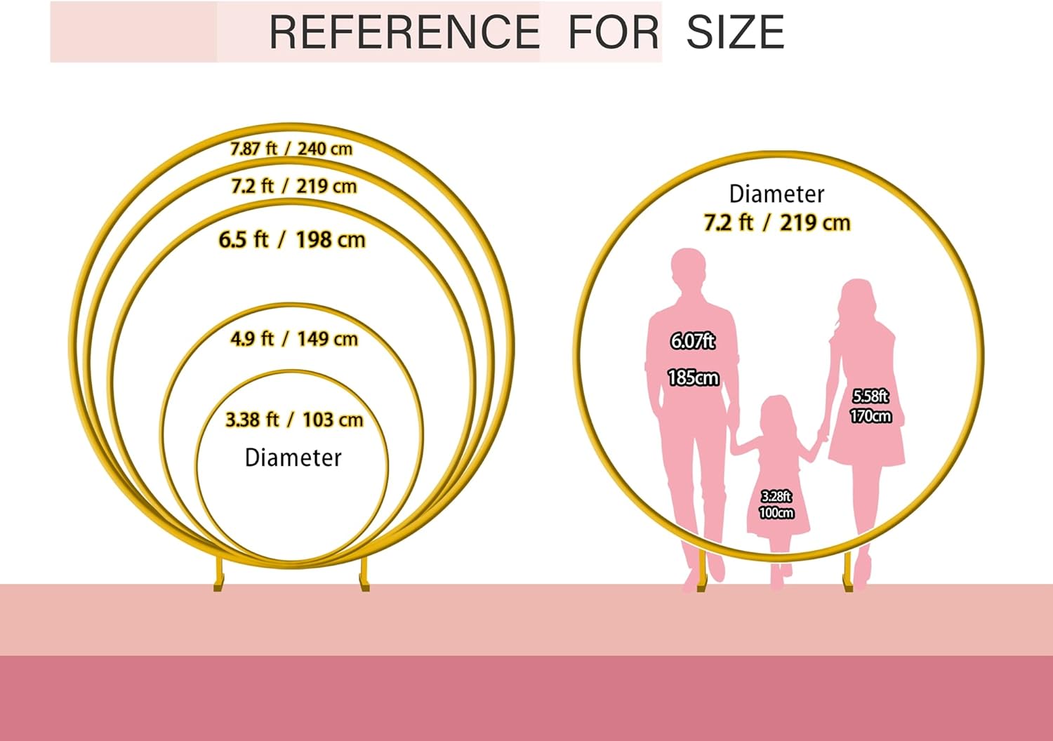 ✨PRODUCT LIST : Our arches measure 7.2ft/2.2m,It contains 12 arched tubes, 2 arched tube with feet and 2 T-shaped bases.
