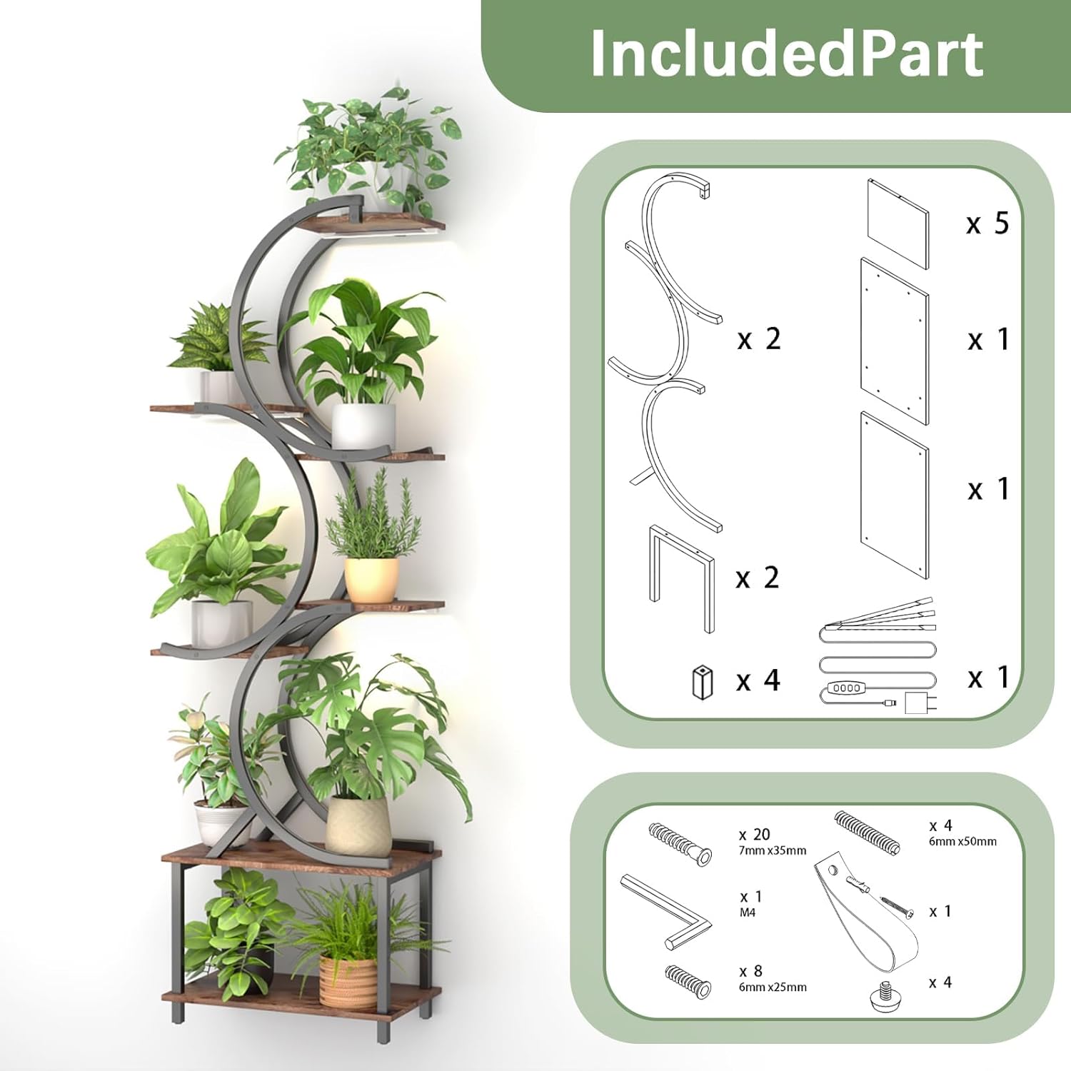 Plant Stand with Grow Light: This indoor plant stand 65" tall and 7 tiers, higher than the same model. It comes with a full-spectrum grow light with timer function and adjustable brightness, providing 10 levels of brightness and 3 levels of timing