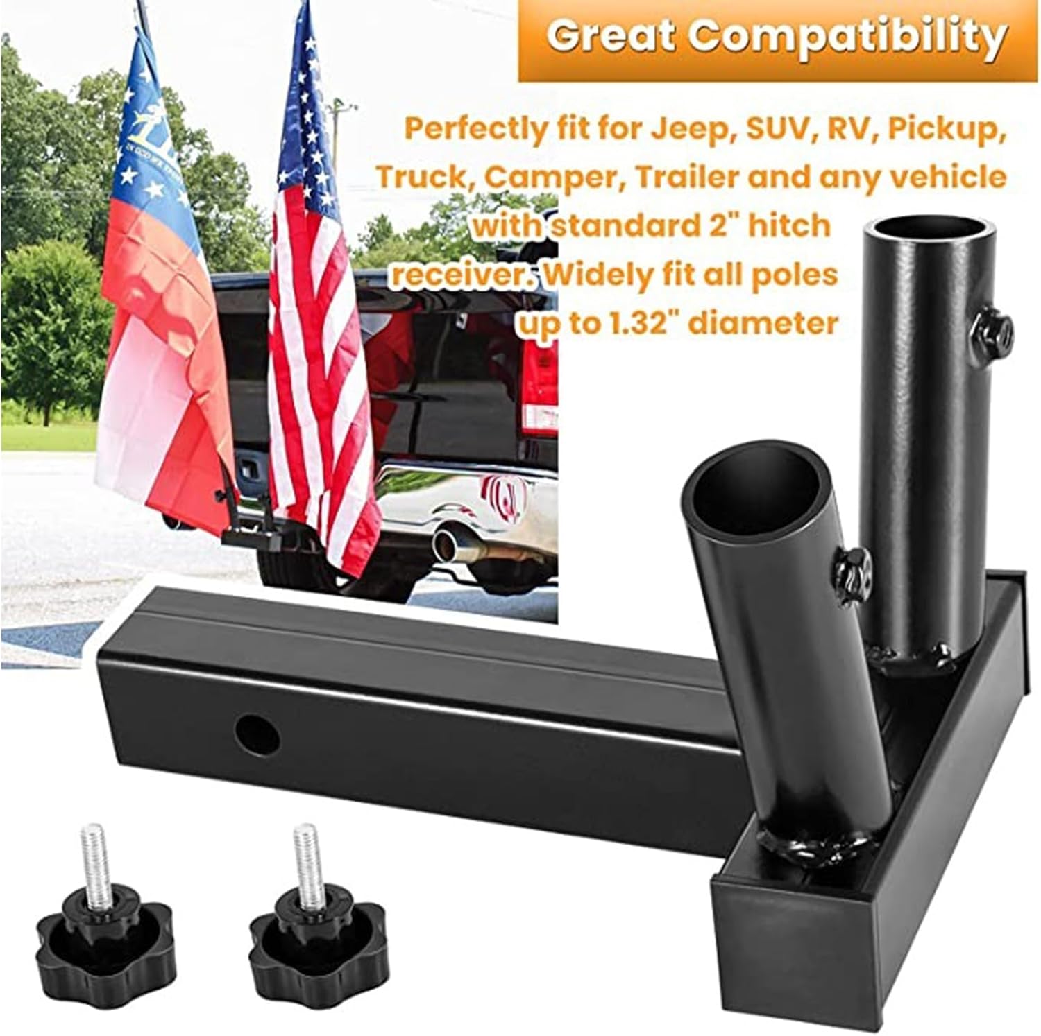 Versatile Angle Adjustment: This flag pole for trucks has a multi-angle design that allows you to adjust the angle of the flags according to your preference. Whether you want to hang your flags horizontally, this flag pole can adapt to any situation