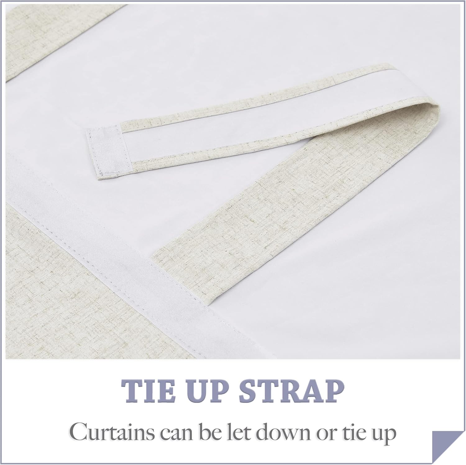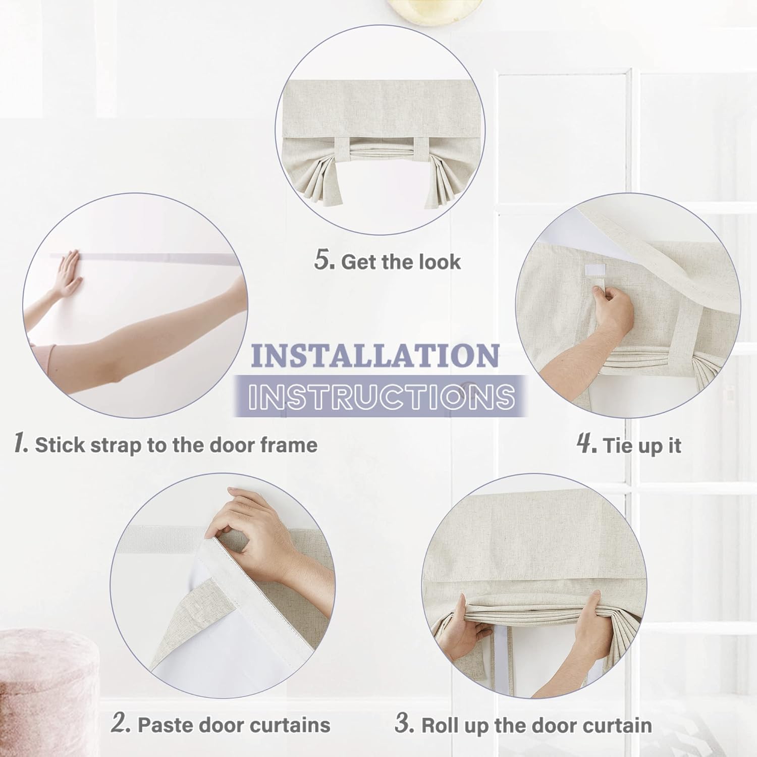 WELL MADE - All you need are included in the package. Package includes 1 panel sticky strap. Curtains made of Natural Linen Blended fabric with one white blackout layer coating.