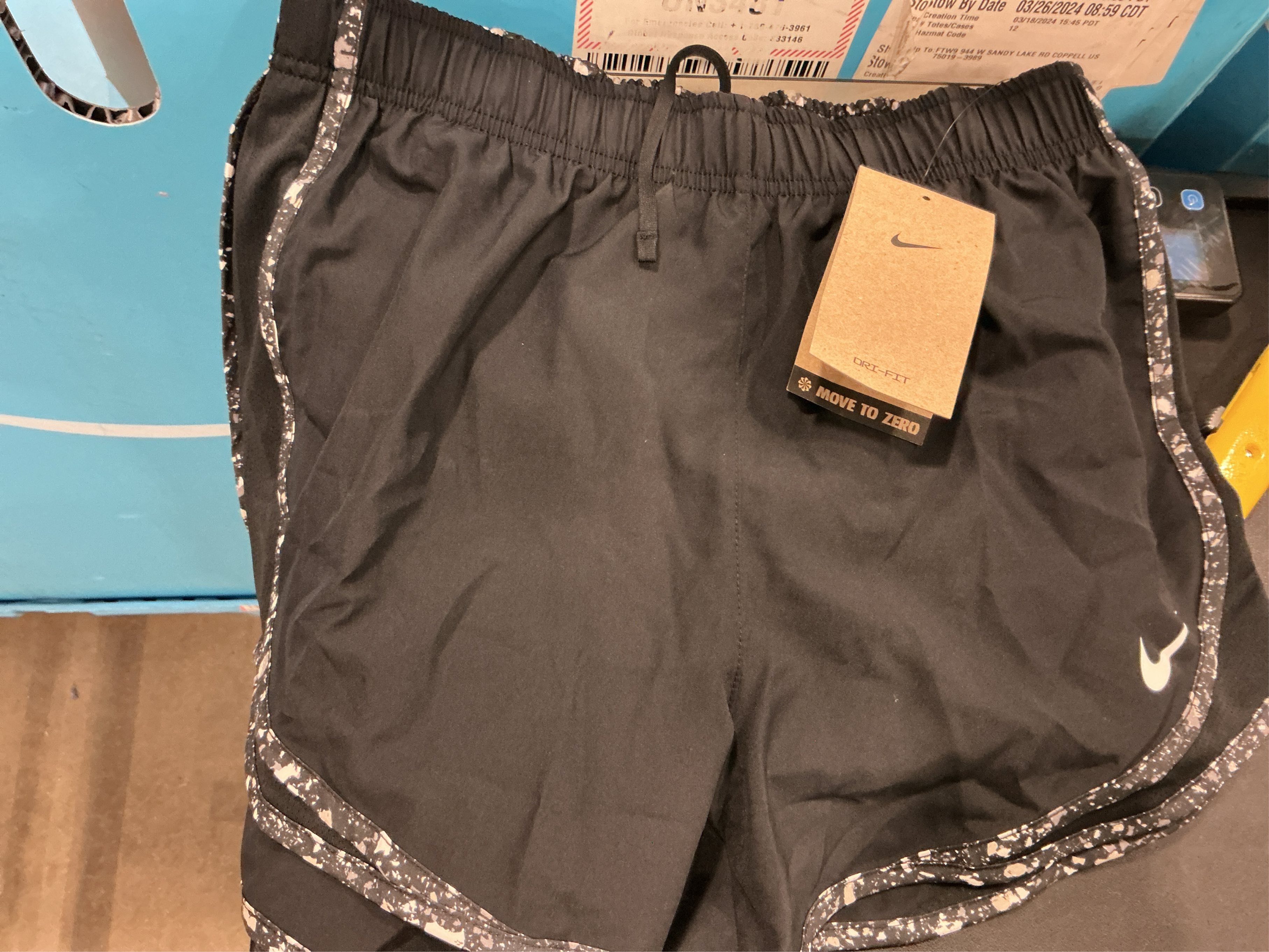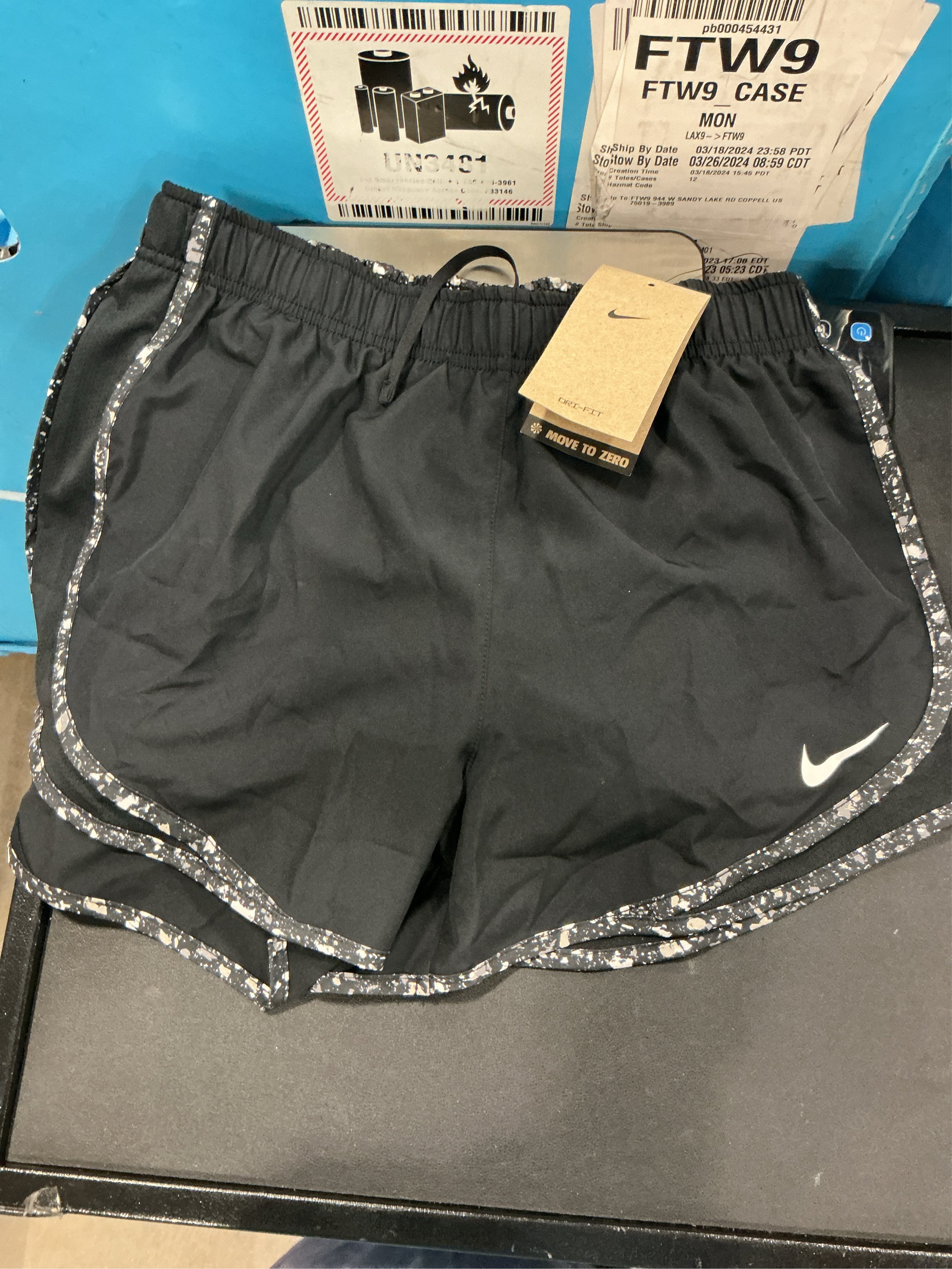 S Nike Women's Dry Tempo Short. All purpose short for your training needs. Streamlined with elastic drawstring waist. Mesh side panels for increased venti lation. Internal back pocket holds small items. Made with sweat wicking Nike Dry fabric. 100% Polyester.