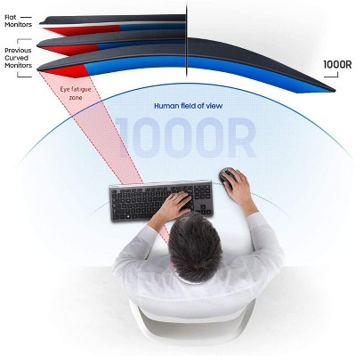 Introducing the boldest curve ever accomplished. This milestone, born from years of relentless innovation, changes the shape of visual display and pioneers the future of monitor technology. 'R' is an acronym representing circular radius. The smaller the 'R' value, the deeper the curve. 1000R