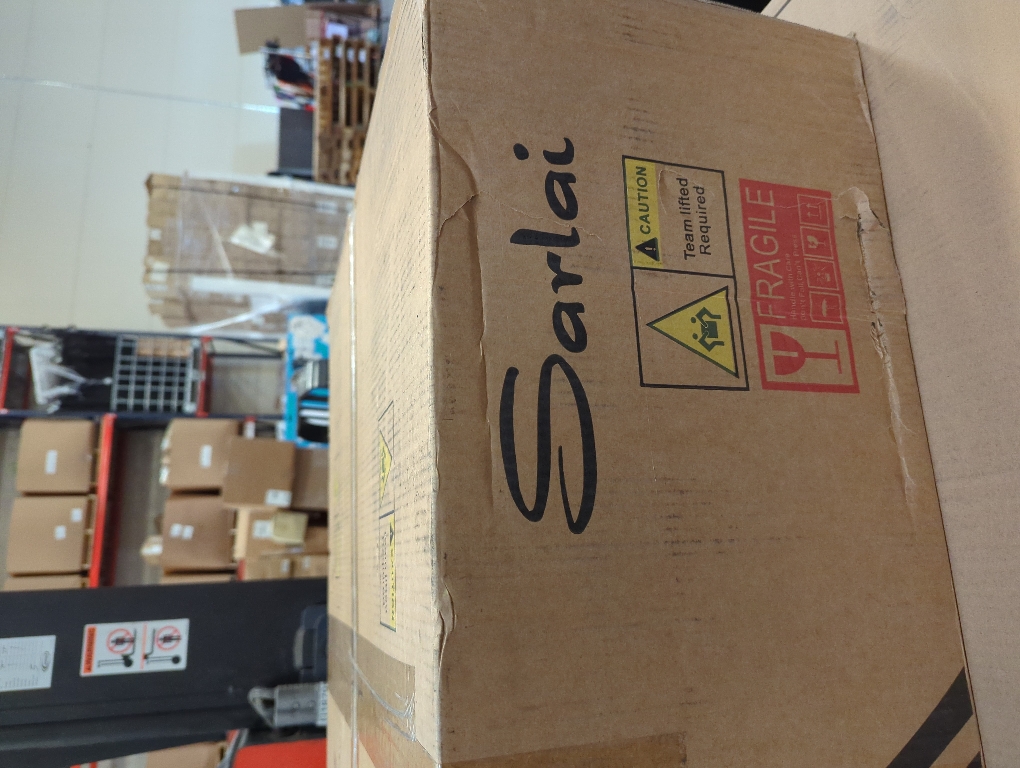 Dimensions and Packages of Sarlai Granite Sink: External dimensions of the sink 33"(W)x22"(D)x9-5/8(H) (minimum cabinet size is 36 inches). The standard 3-1/2" offset drain opening fits any garbage disposal unit. The 33" composite kitchen sink features ledges on the front and back, providing a track for a workstation sink with customizable included accessories. ---PACKAGE--- includes a 33-inch white granite kitchen sink, a large cutting board, a roll-up drying rack, a bottom rinse grid, a drain assembly, a cutout template, clips, and instructions.