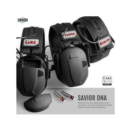 Passive Sound Dampening - 24dB NRR Active Electronic Sound Compression Compact Collapsible Design Includes: Adaptive Cool Gel Ear Pads 1x American Flag Patch 1x Savior Writable ID Patch 2x AAA Energizer Batteries Imported