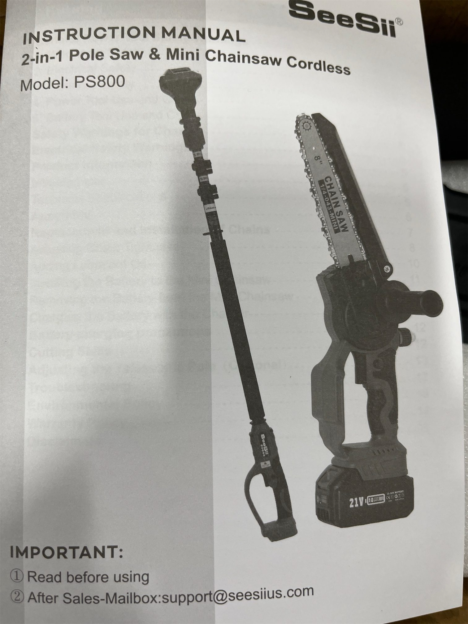 Seesii 2 in 1 Cordless 8 inch Pole Saw & Mini Chainsaw with 2 Battery, Power Electric Polesaw for Tree Trimming, Chain Saw with Extension Pole, Limb Branch Cutter Pruner PS800