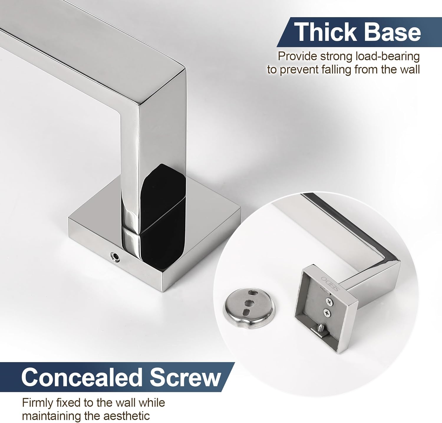 [ Heavy-Duty Secure Towel Rack ] Built with reinforced tubing and a wide square base, this single towel bar securely supports heavy towels without wall detachment. The sleek square towel rod combines modern design with durability, resisting bending and breaking while keeping towels neatly in place.