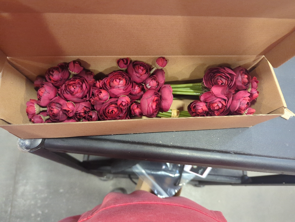 New Open box for inspection Set of 18 Color red Package include 18 pieces ranunculus flowers, each ranunculus has four flowers - two blooming flowers, and two little flower buds.