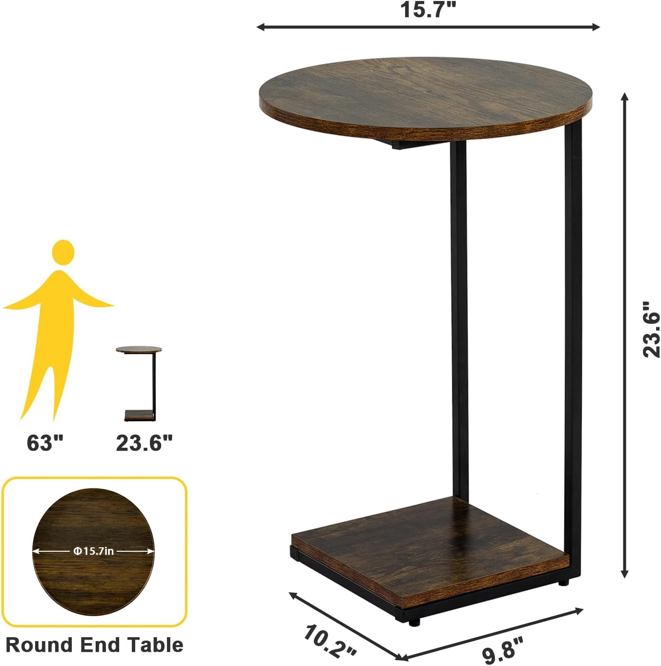 Set of 2 Color Brown  C Table End Table Set of 2,C Shaped End Table for Round,Round Side Table is Suitable for Living Room and Bedroom.(Brown)