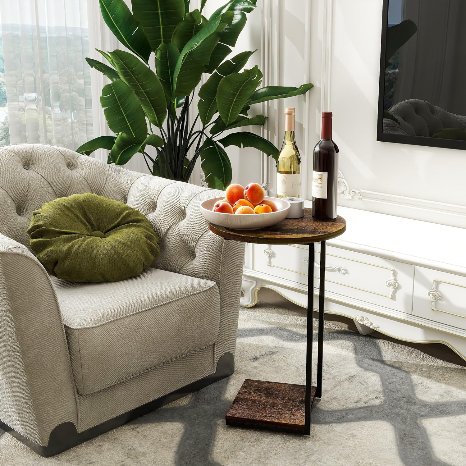 MODERN C-SHAPED DESIGN: Our end table features a sleek and modern C-shaped design, allowing for easy placement beneath your sofa, coffee table, or even your bed. Its unique shape adds a contemporary touch to any room.