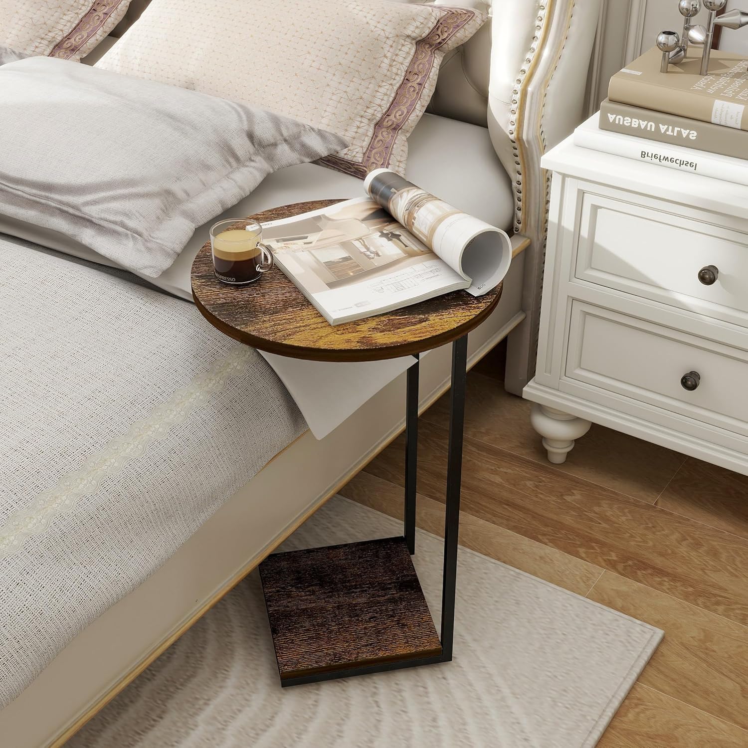 3. Set of 2 Color Brown C Table End Table Set of 2,C Shaped End Table for Round,Round Side Table is Suitable for Living Room and Bedroom.(Brown)